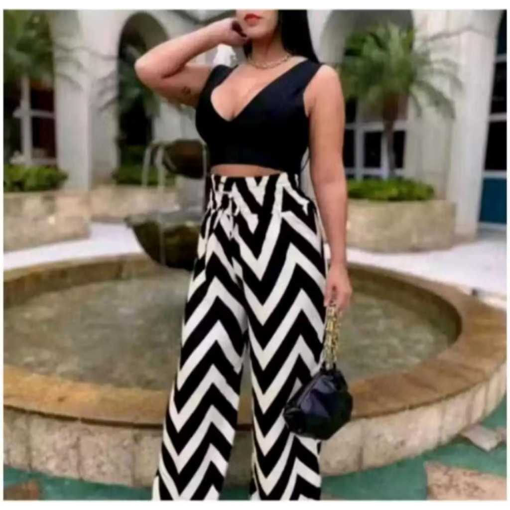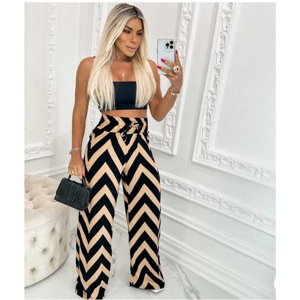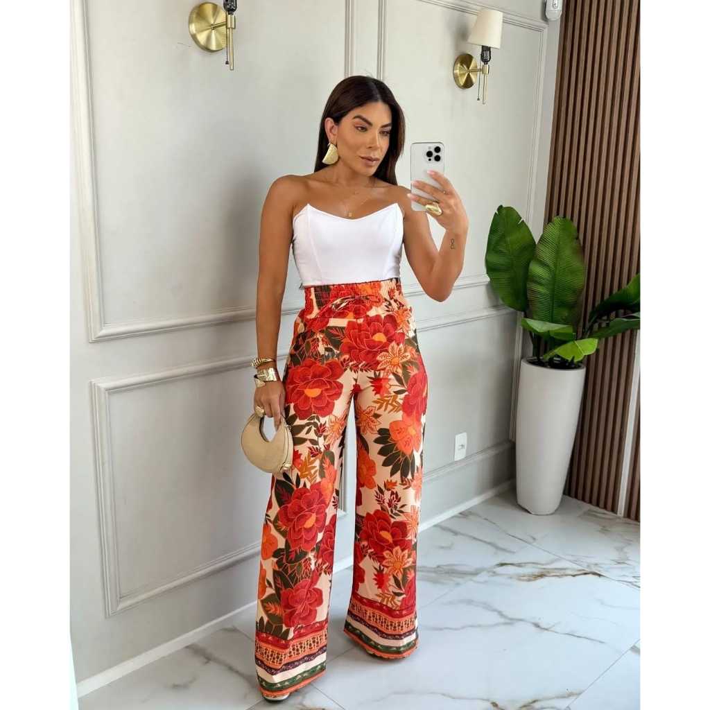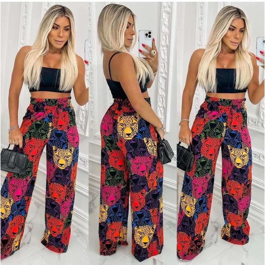 Calça Pantalona Feminina de Cintura Alta com Elástico Largo