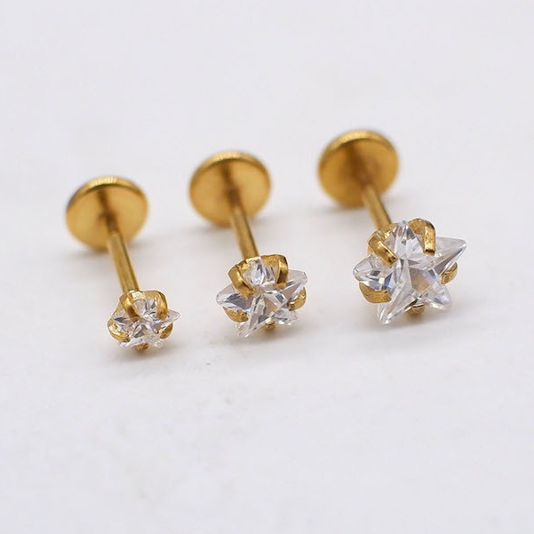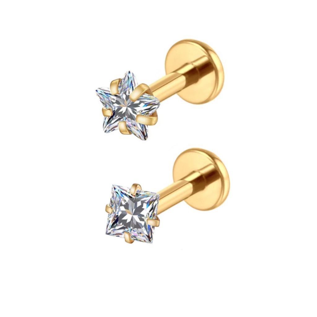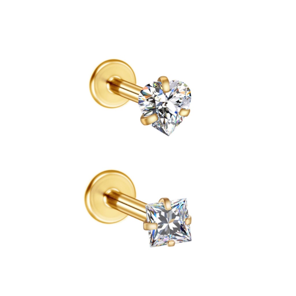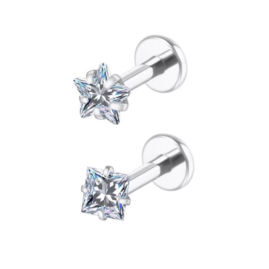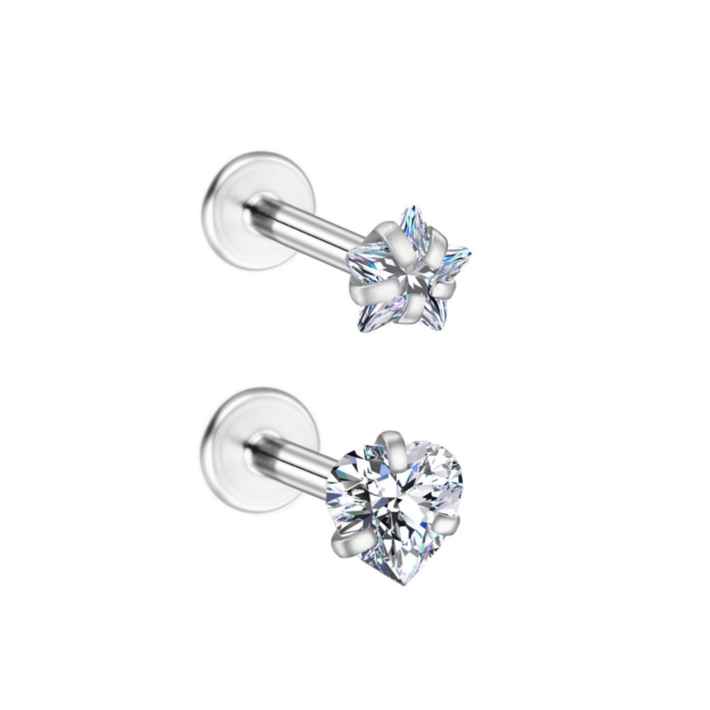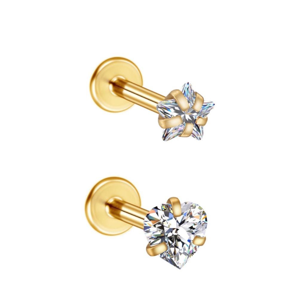 Kit 2PCS Piercing Minibarbell Aço Cirúrgico PVD Zircônia / Helix, Flat, Conch, Tragus, Lóbulo e Outros KA501 - KIT 2