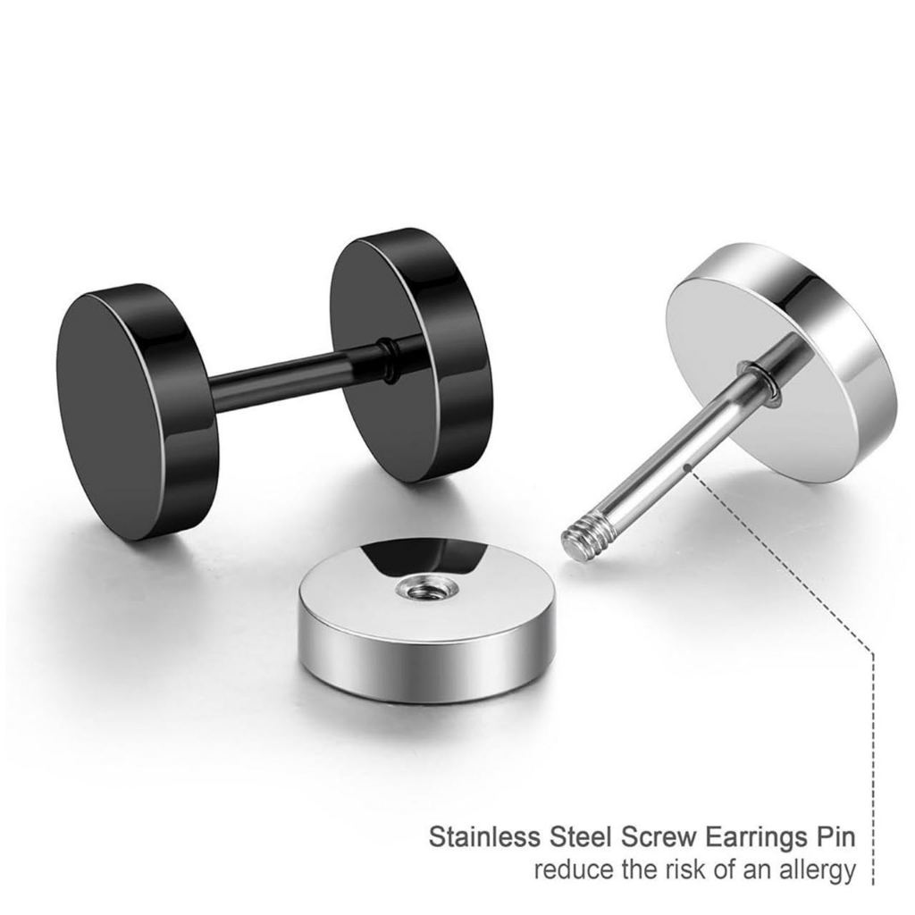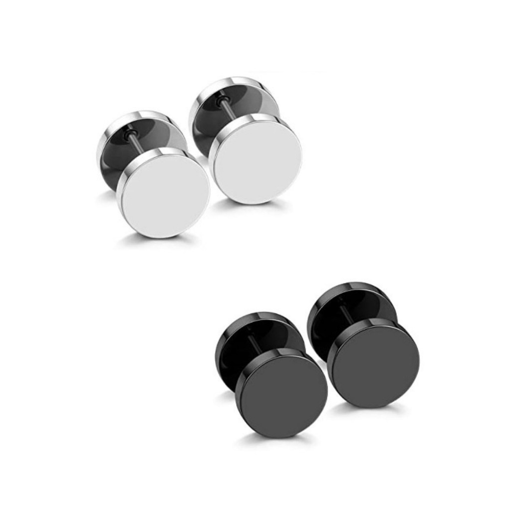 Kit 2 Pares Brinco Falso Alargador Preto e Prata Masculino feminino unissex KA429