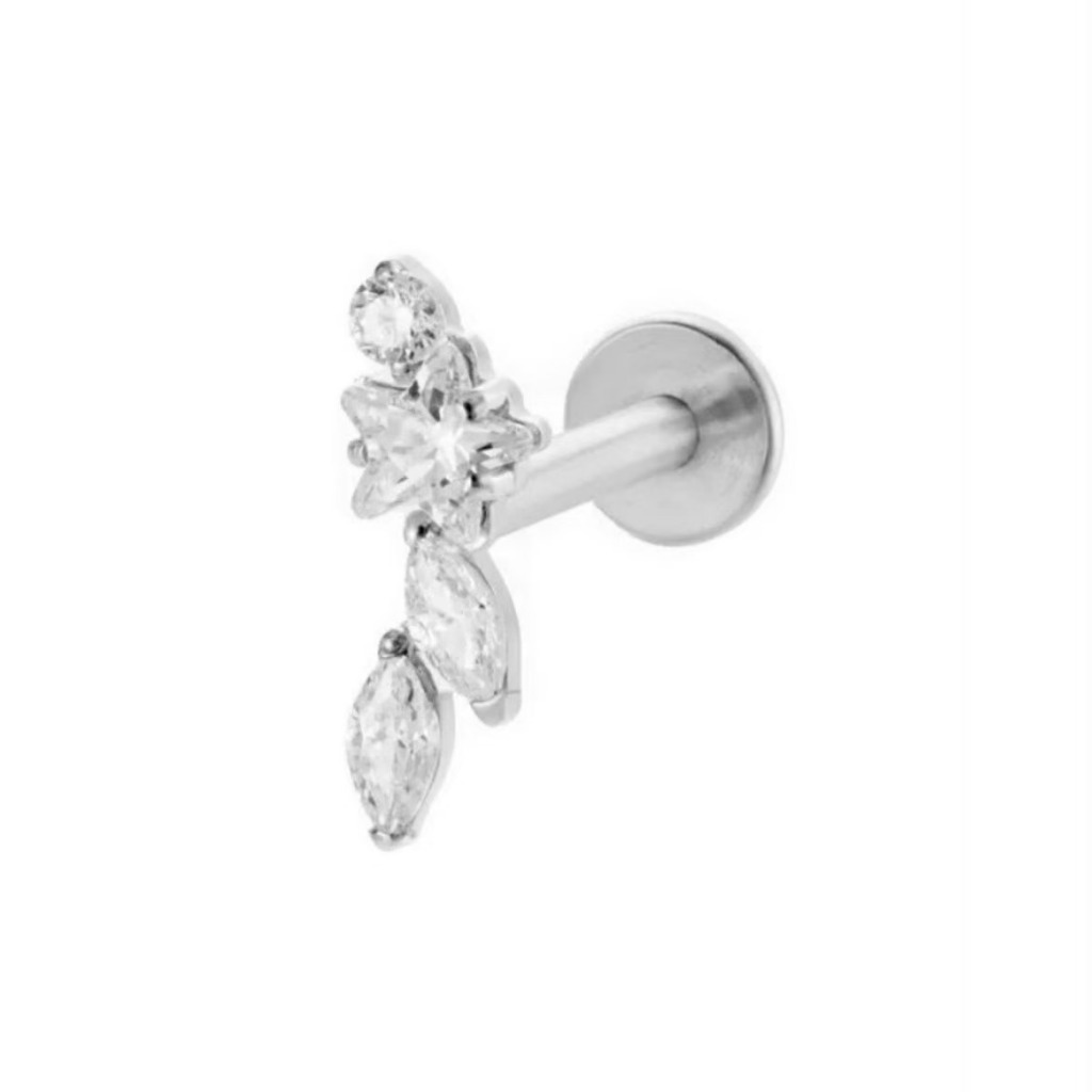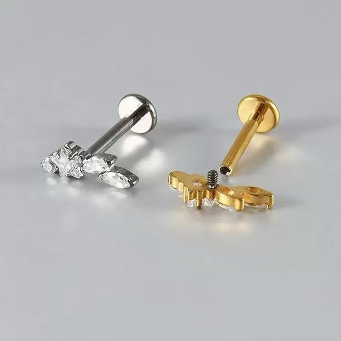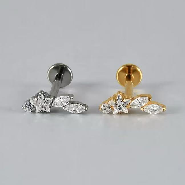 Piercing Estrela com Zircônia Labret Aço Cirúrgico| Helix, Tragus, Conch, Nariz, Boca-Medusa e Outros KB509 -1 unidade
