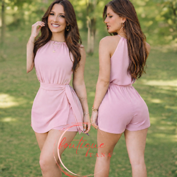 Macaquinho Feminino Short Saia Tecido Duna tendência 2026