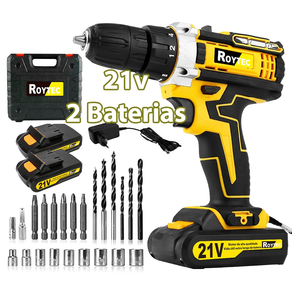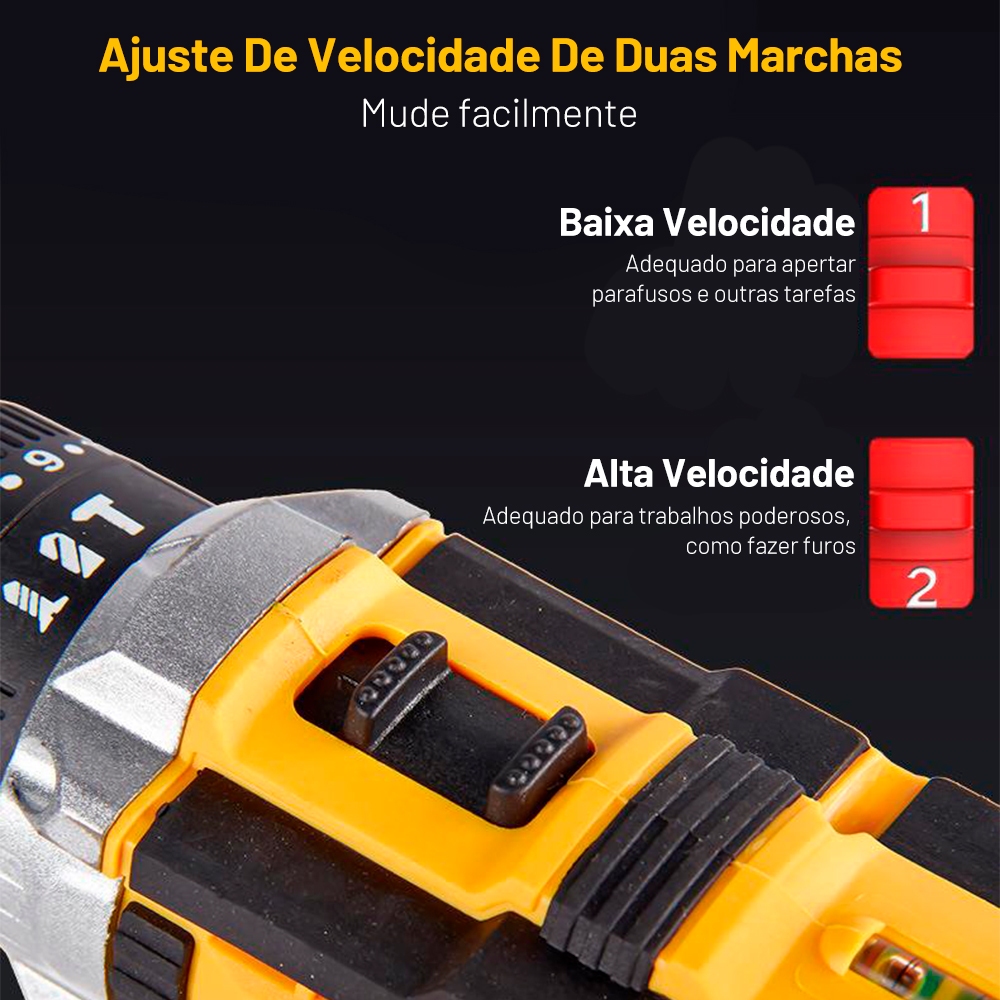 Parafusadeira Furadeira impacto sem Fio 3/8 2 pcs Bateria 21v com Maleta Acessórios
