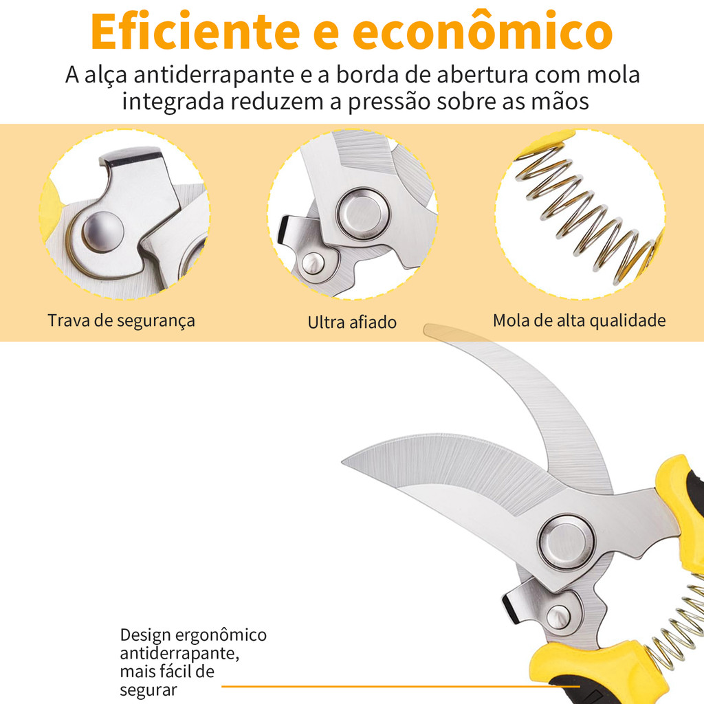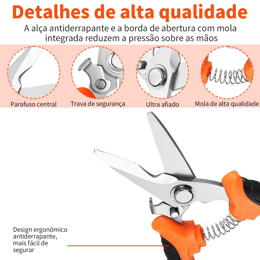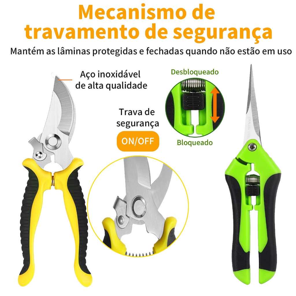 Tesoura de Jardinagem Kit 3 Peças Profissional - Aço Inoxidável para Poda, Flores e Frutas com Bolsa Inclusa