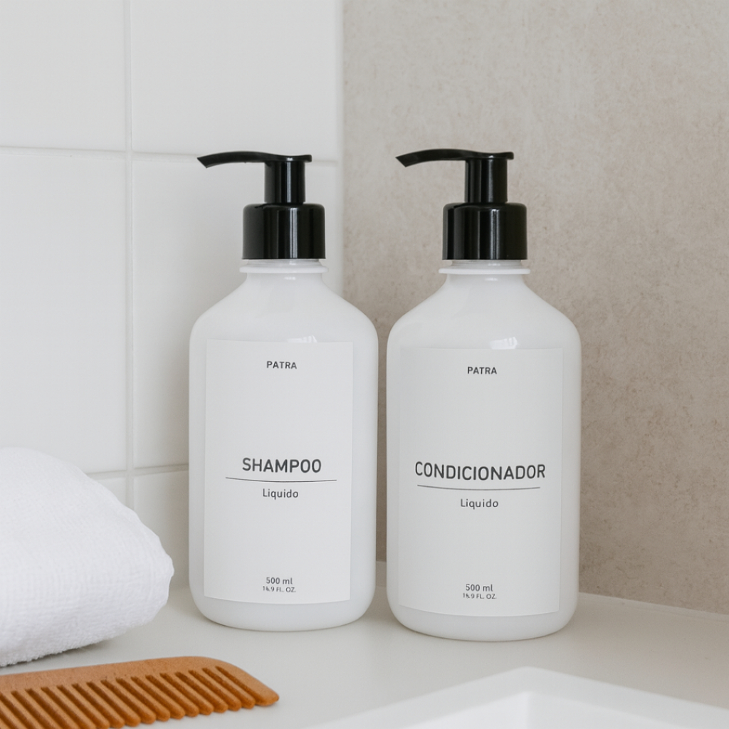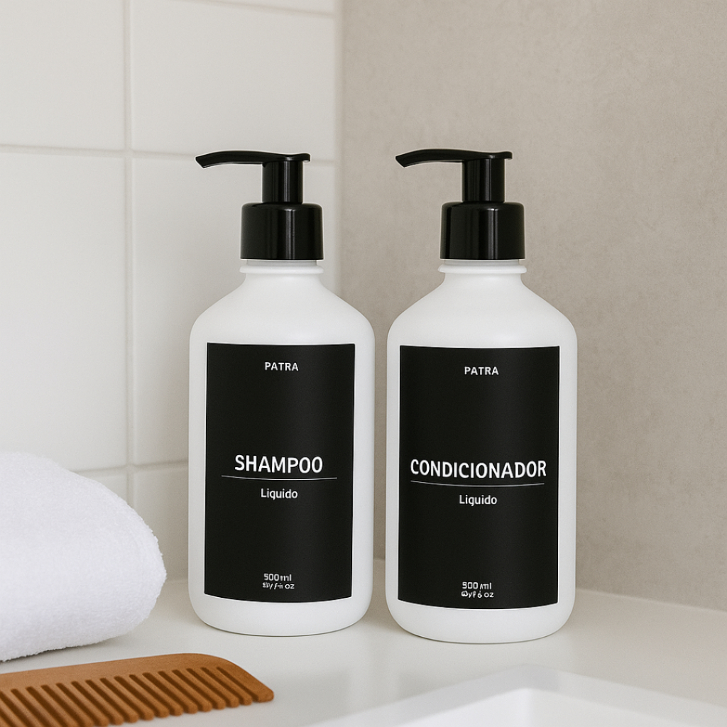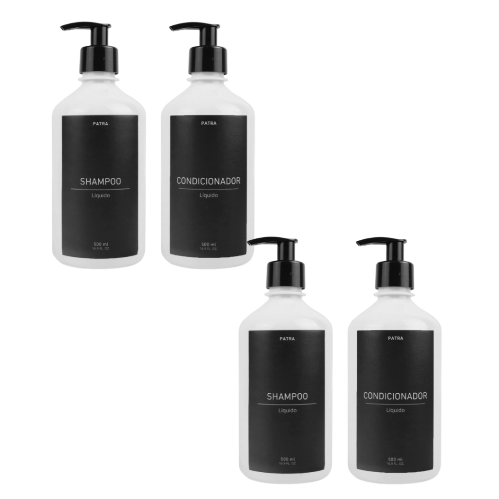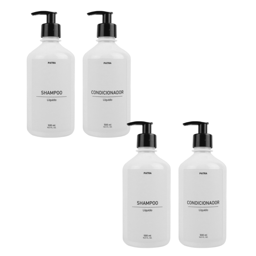2 kit Banho Frasco Branco 2pçs Shampoo e Condicionador Dispenser 500ml Pharma