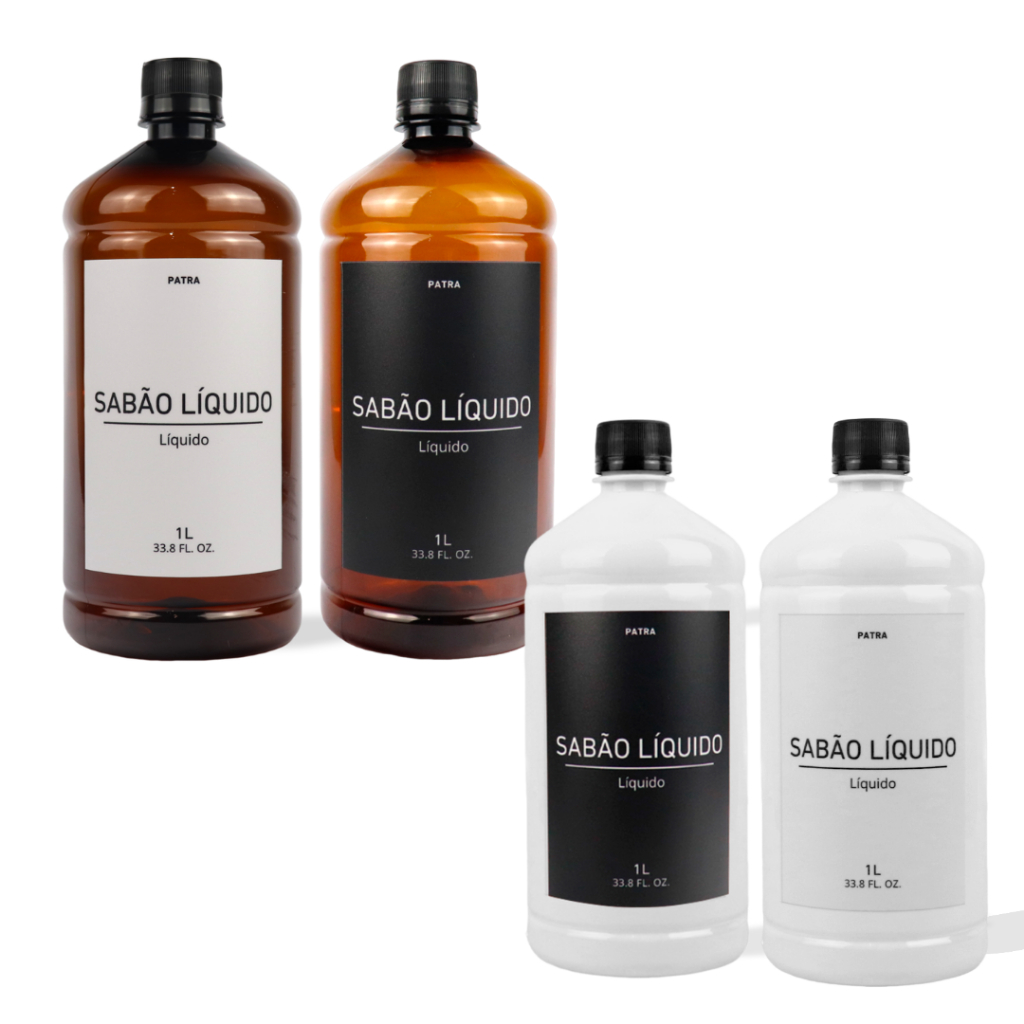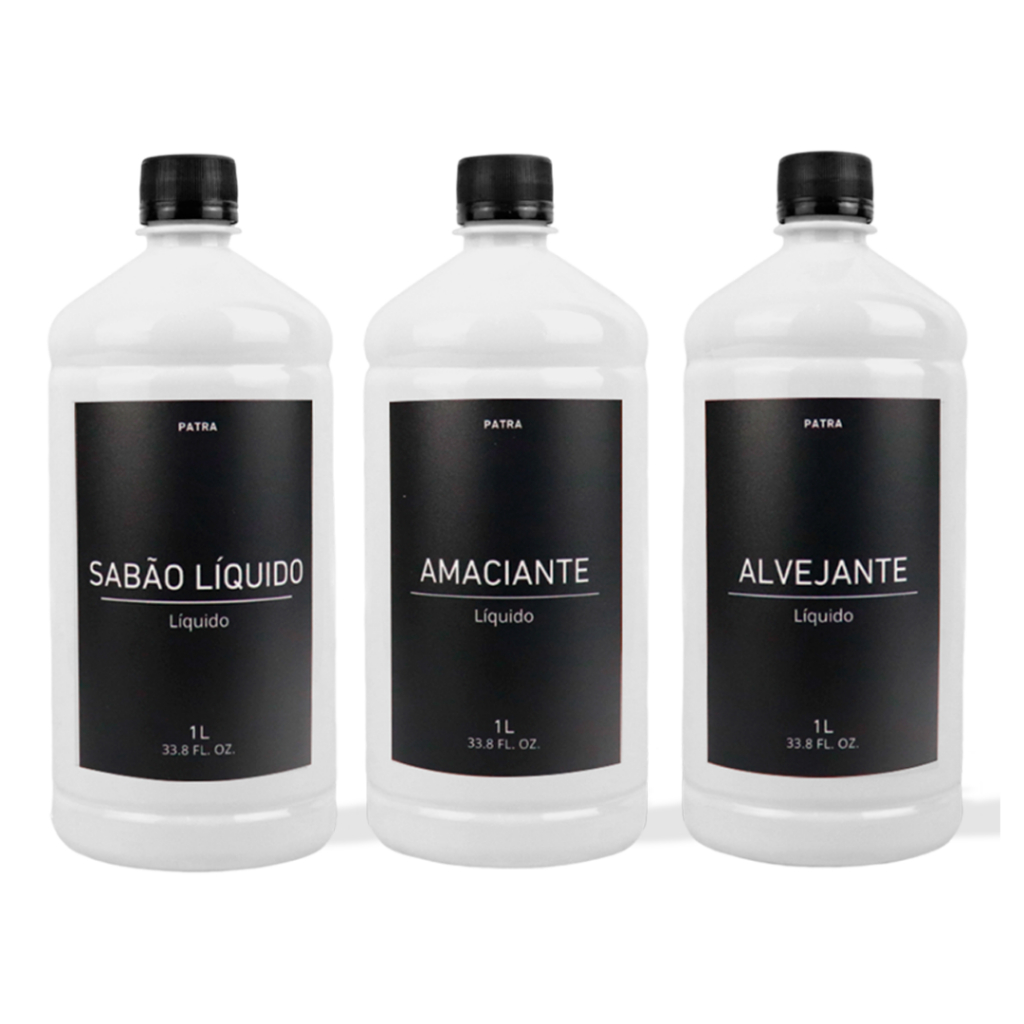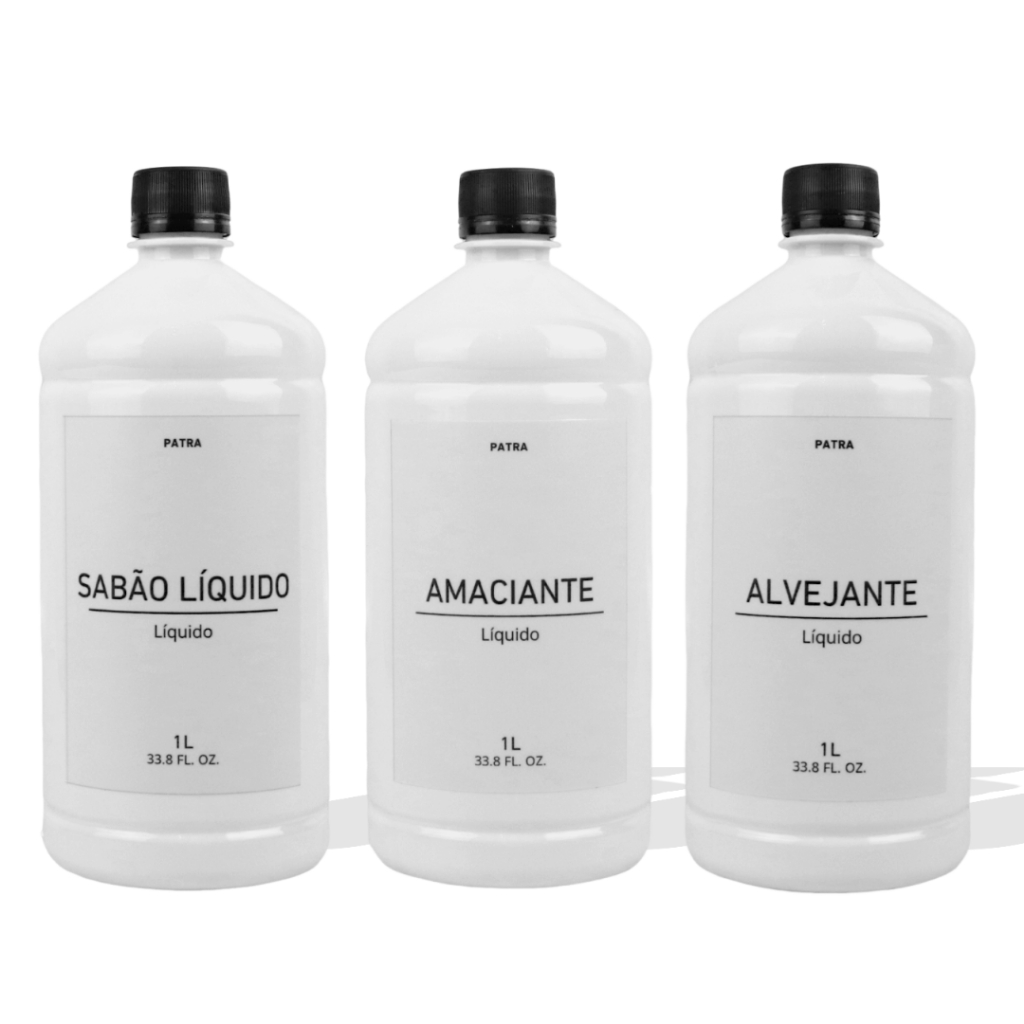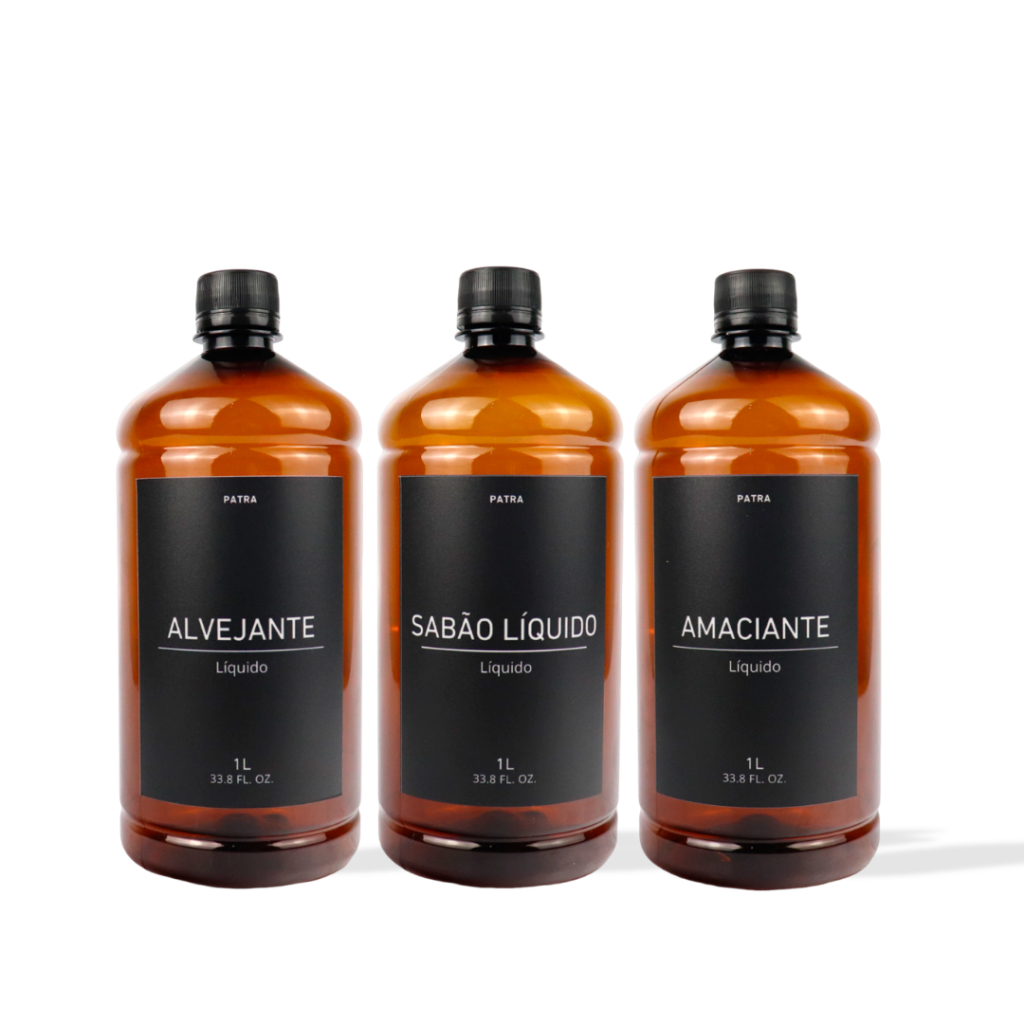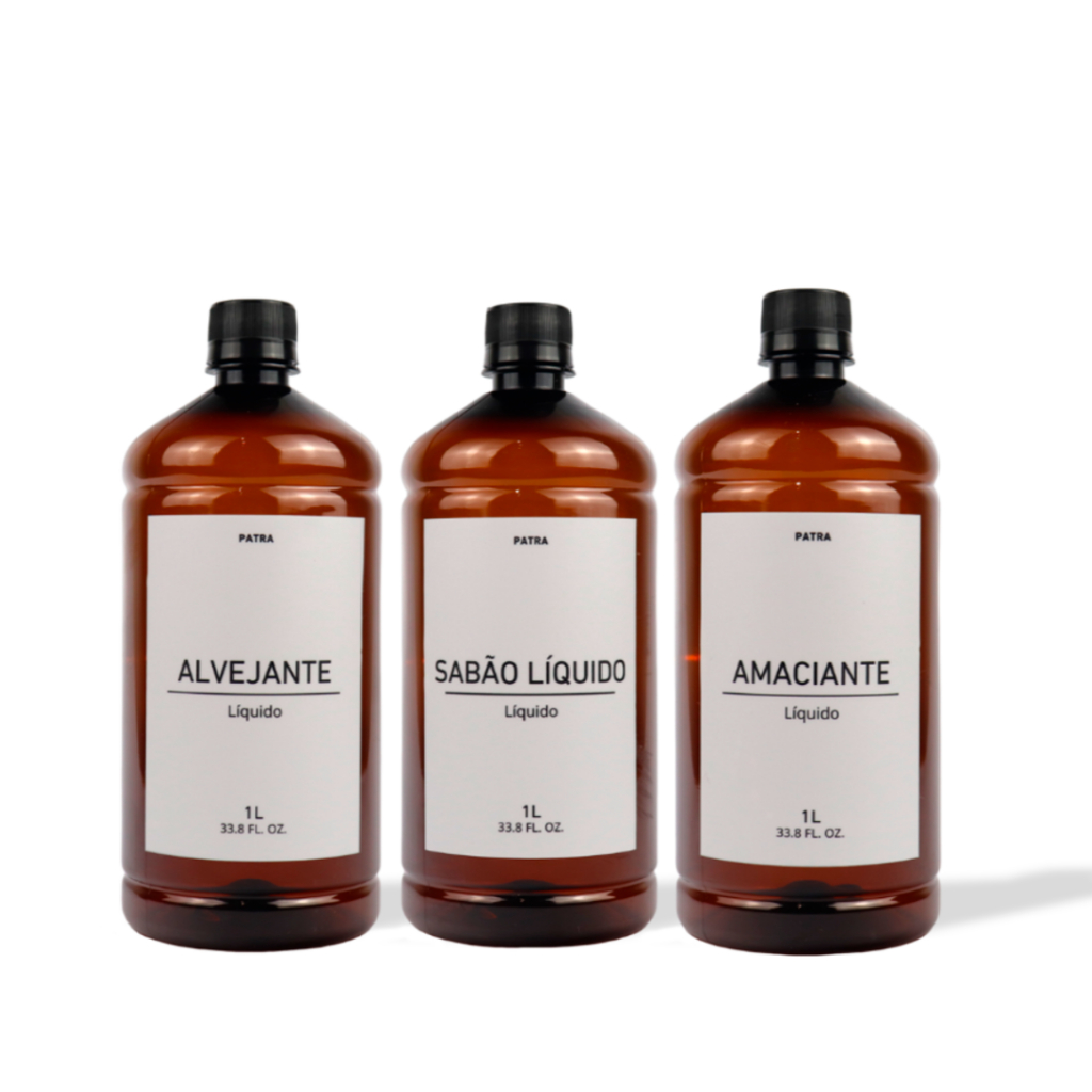 Kit 3 Frascos PET Âmbar 1L Sabão Líquido Amaciante e Alvejante PATRA