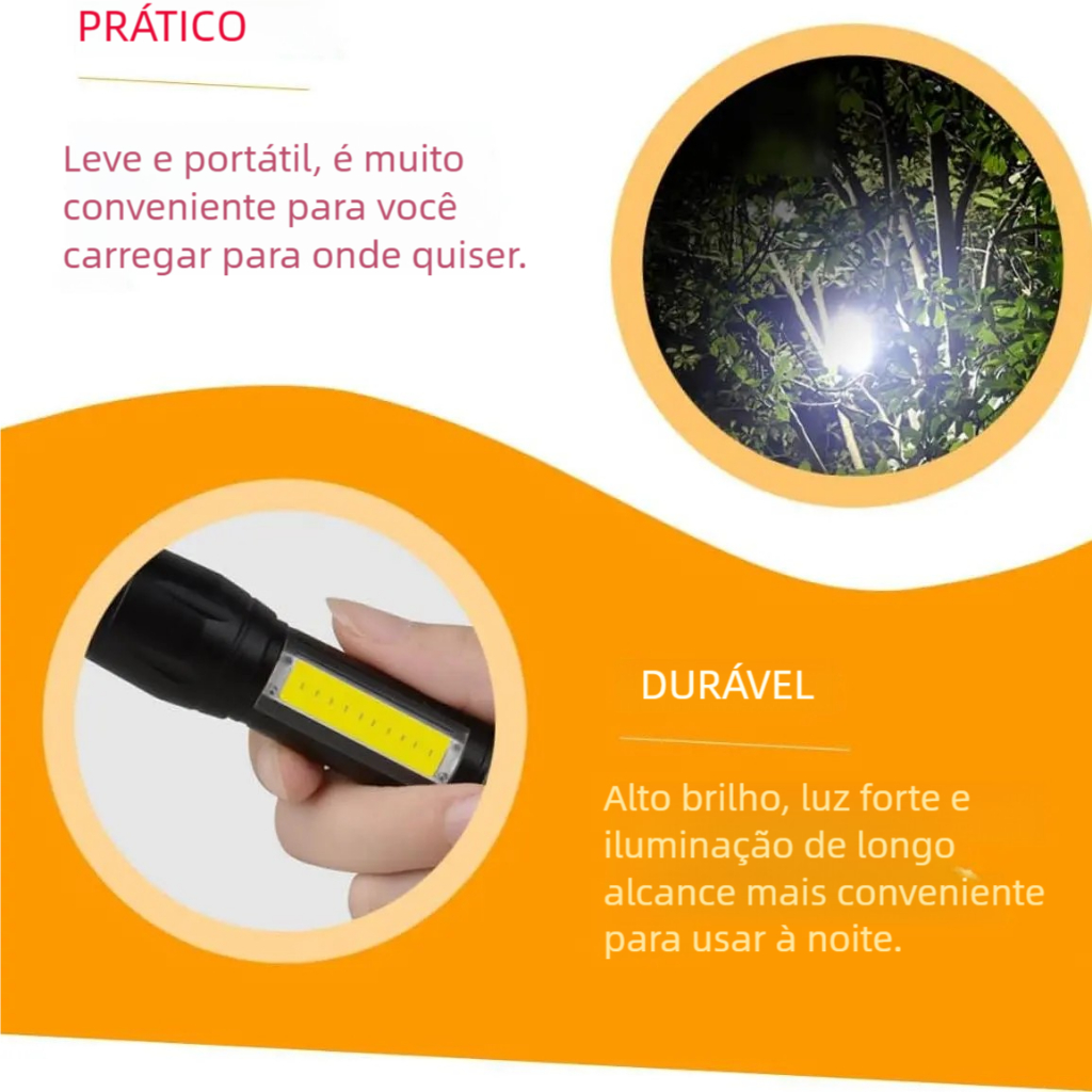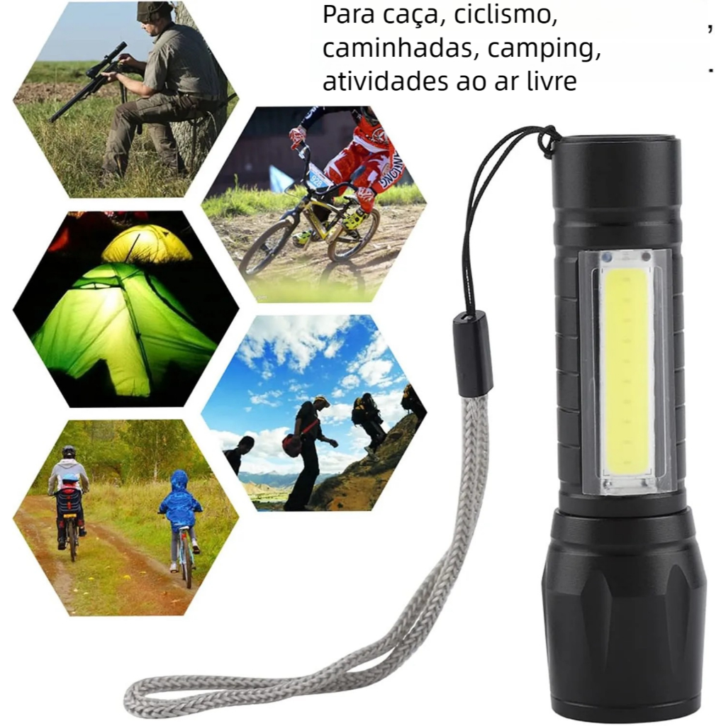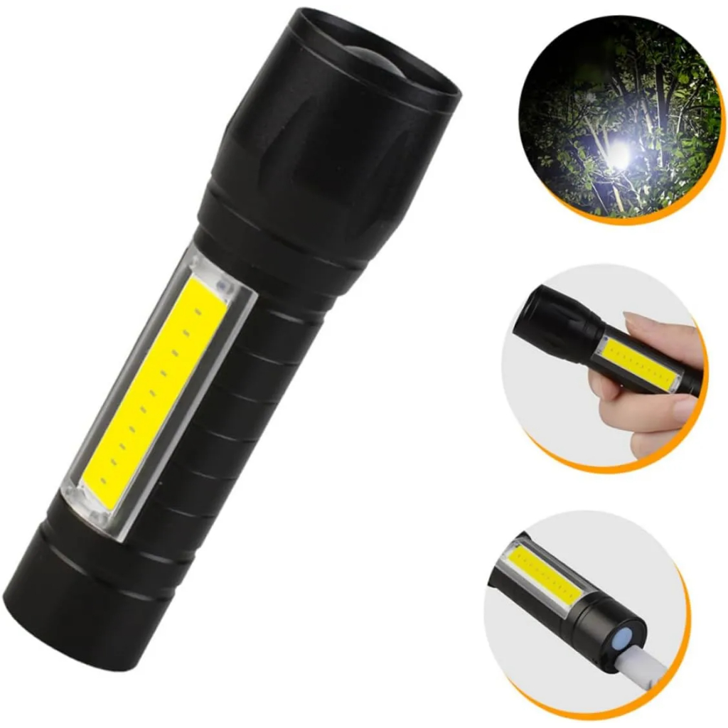 Lanterna Mini LED USB Recarregável - Brilhante Zoom, COB Luz Lateral e Waterproof para Acampamento