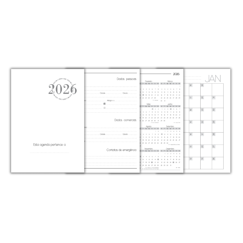 Miolo de Agenda 2026 - Impresso no A5 / Capa Dura + 354 Páginas / Embalagem Unitária