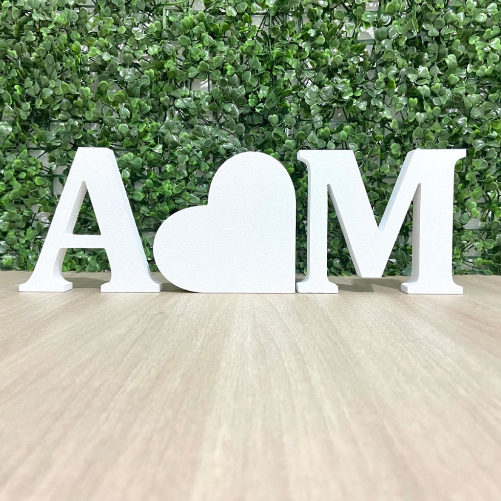 Kit 2 Letras e 1 Coração PVC EXPANDIDO15mm Presente Noiva Casamento Dia dos Namorados