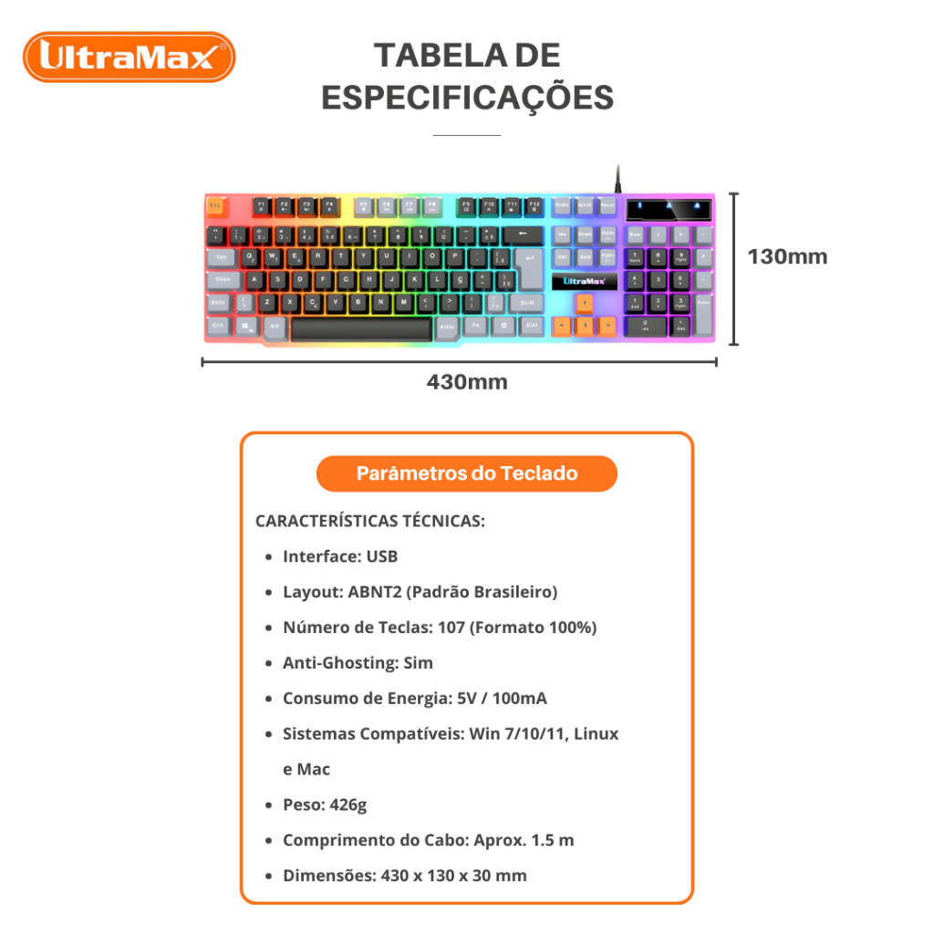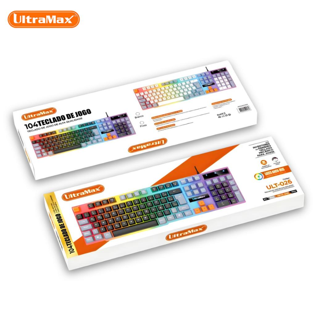 Teclado Semi-Mecânico Gamer UltraMax ULT-026 RGB Formato Full Size 100% ABNT2