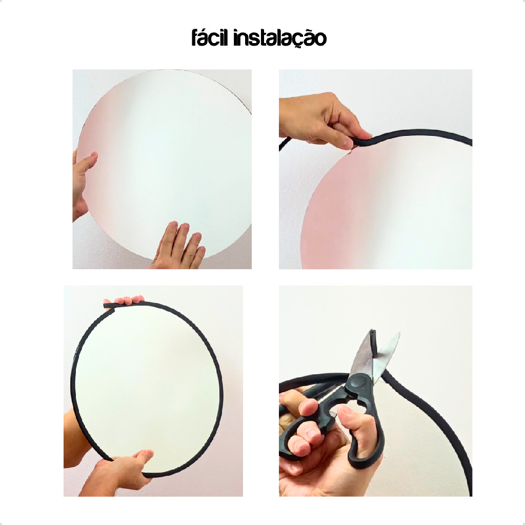 Moldura Flexivel Auto Colante Preta Espelho 5m para Encaixar em Qualquer Formato Moderna e Elegante