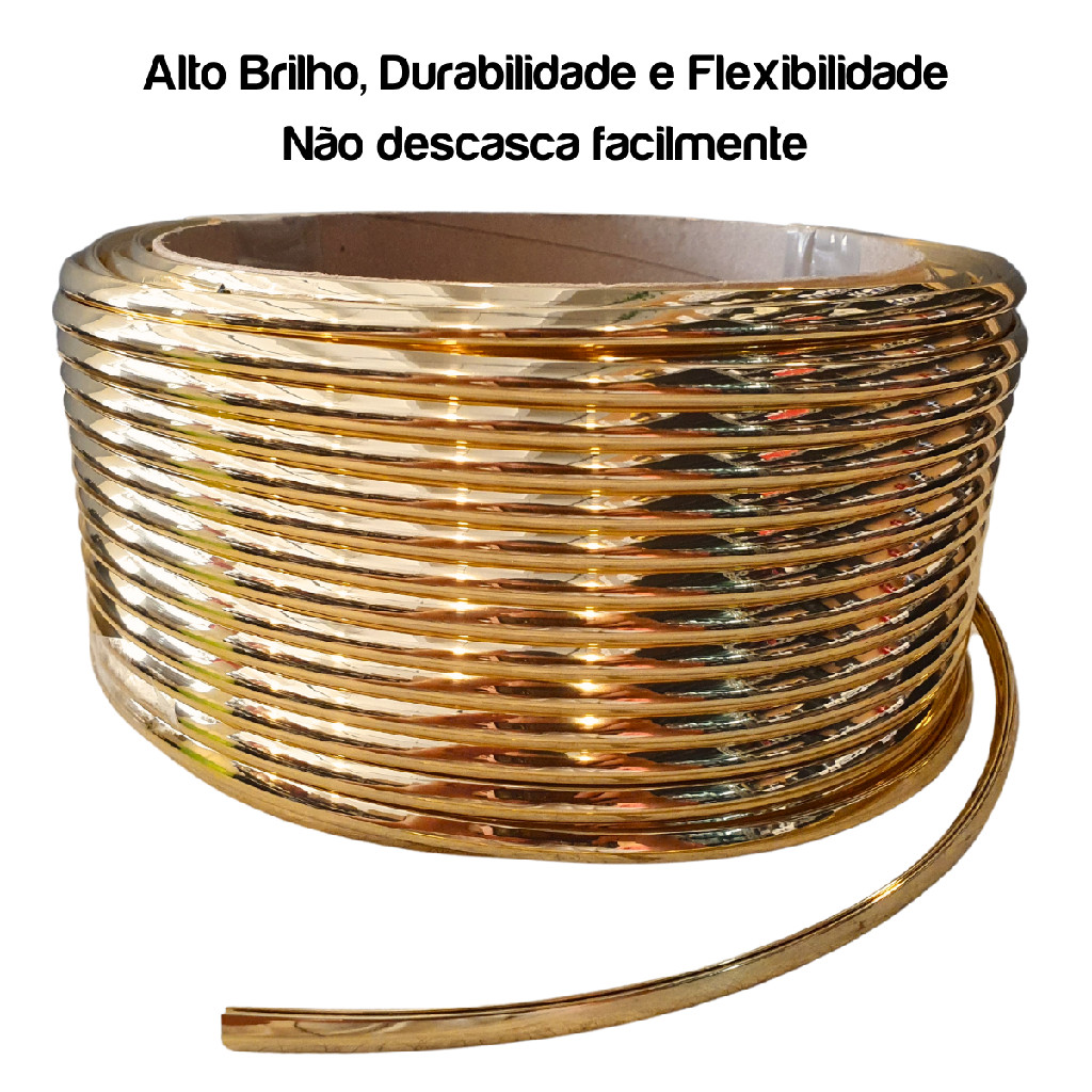 Moldura Espelho Flexivel Dourada 5m Com Cola para Encaixar em Qualquer Formato Moderna e Elegante