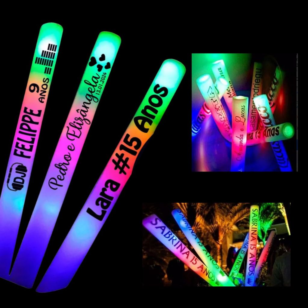 Kit Bastão LED Personalizado Com Frase 10 a 40 Un para Festa Casamento Formatura 15 Anos Lembrança