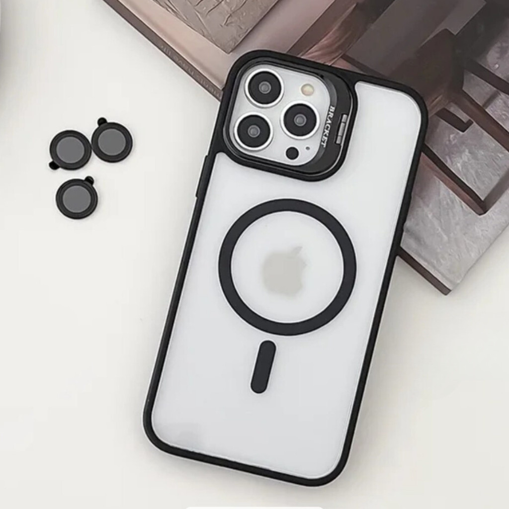 Capinha capa case magsafe + proteção lente câmera para iphone 11 12 13 14 15 16 pro plus promax