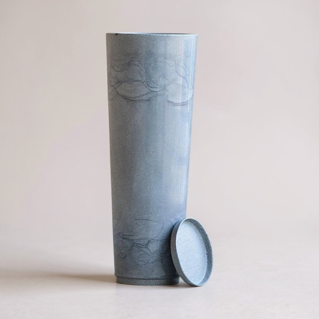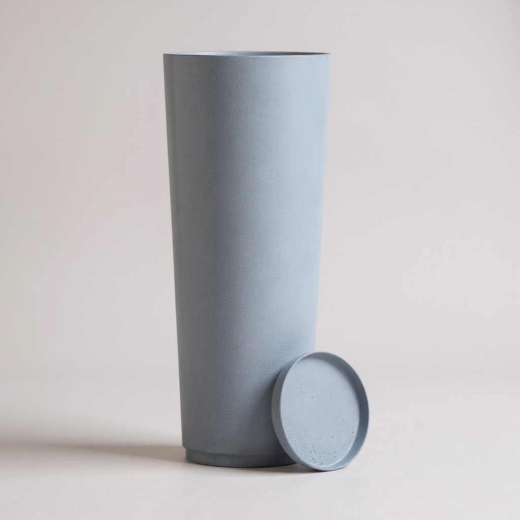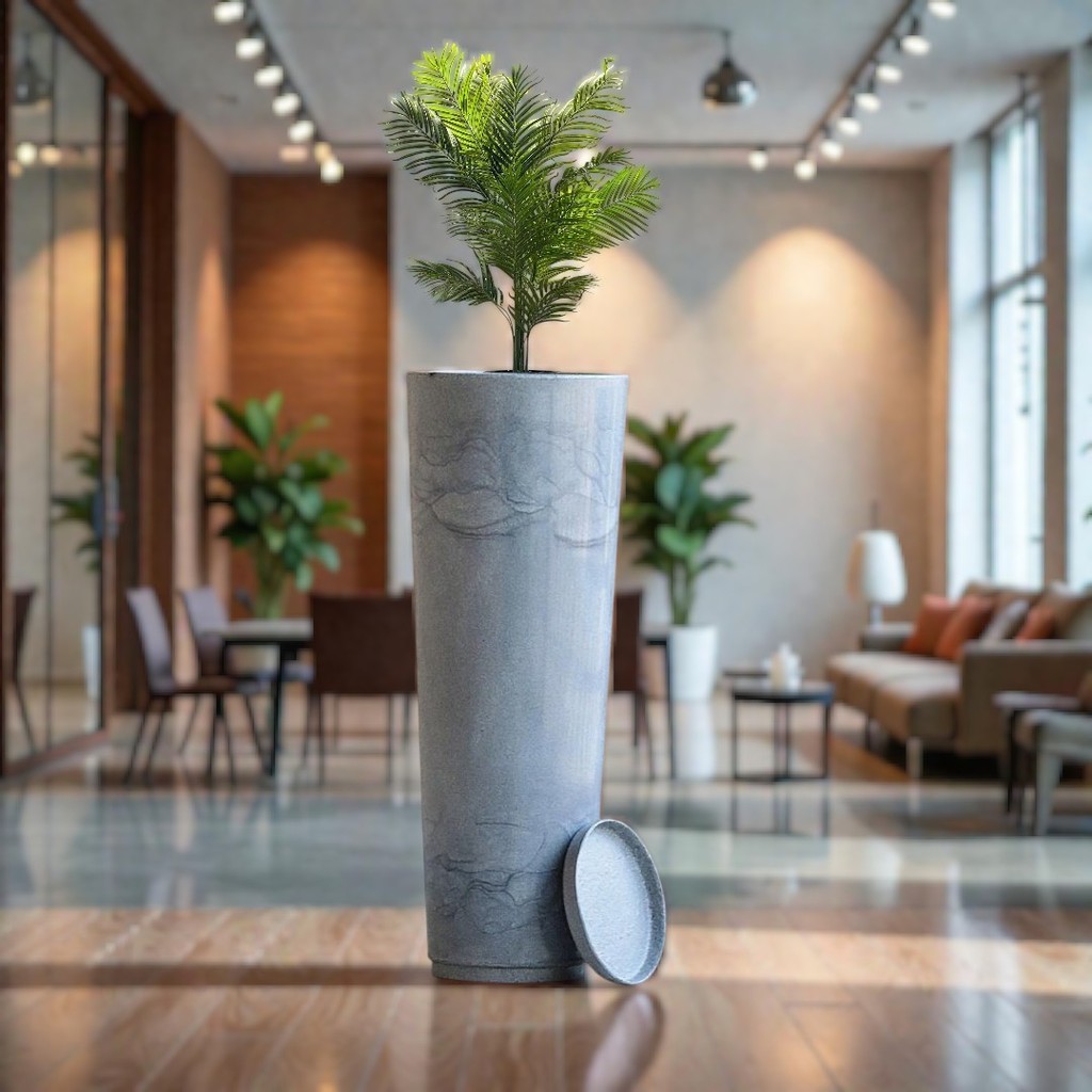 Vaso de Planta Decorativo Alta Grande 70x26 Coluna Ibiza Slim Marmorizado Liso Polido com Prato