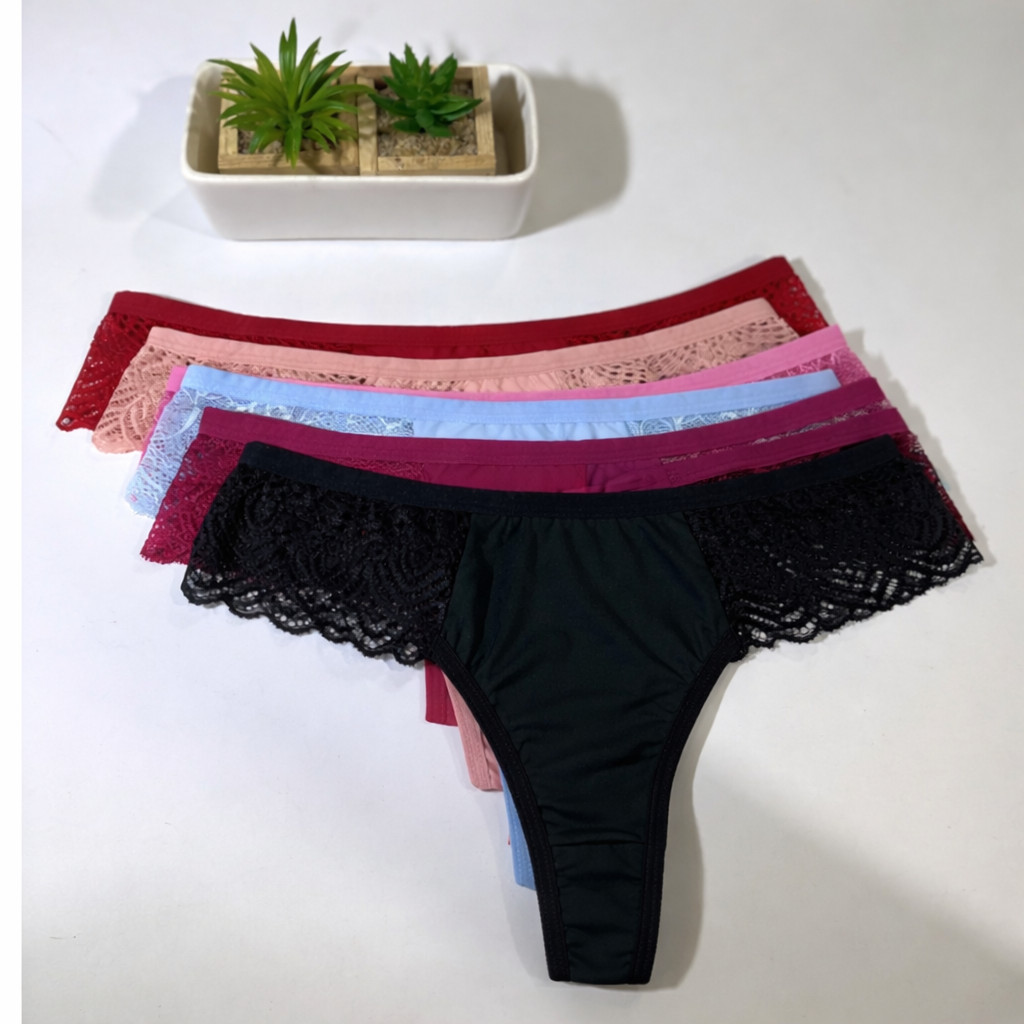 Kit 10 Calcinhas Tanga Fio Dental Microfibra com Renda Confortável Sexy | Conforto e Sensualidade