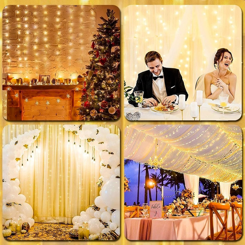 USB 3*3M 300Luz Cortina LED 8Modos Iluminação Luzes Fada Fadas Para Decorações Natal Controle remoto