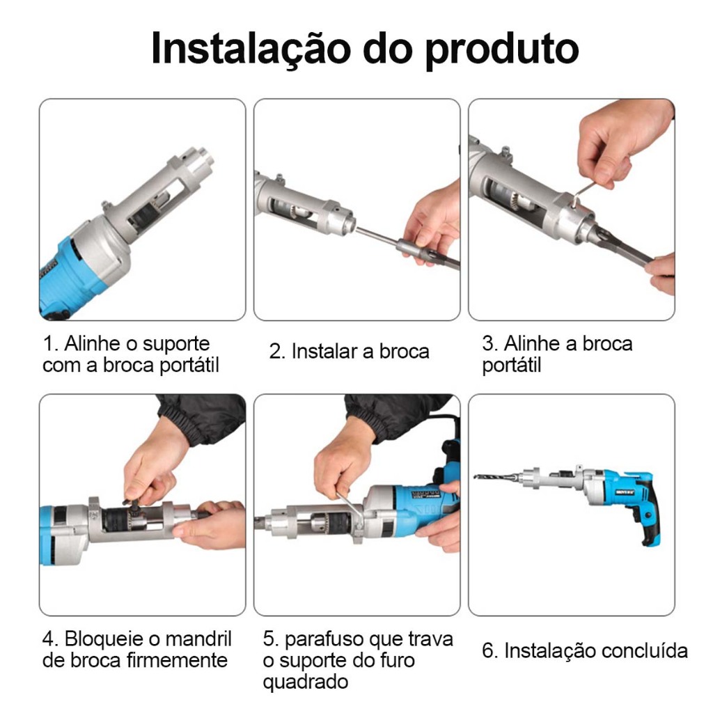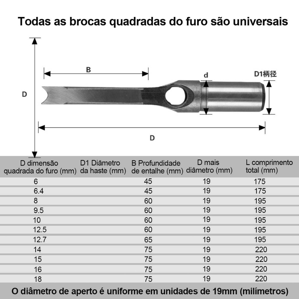 Adaptador de broca de furo quadrado ferramenta acessório portátil durável