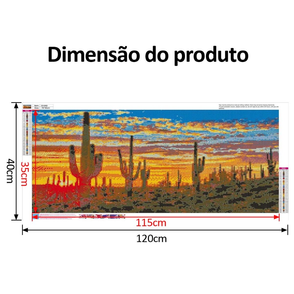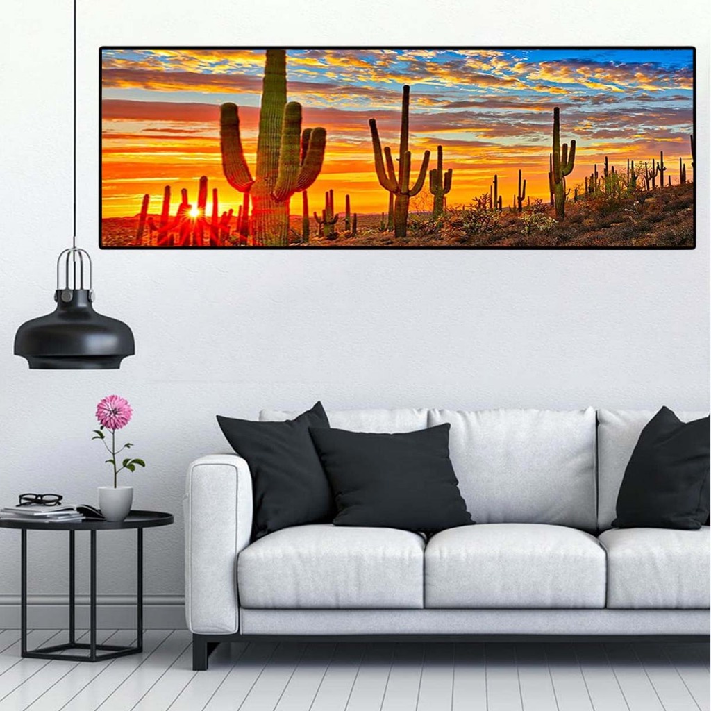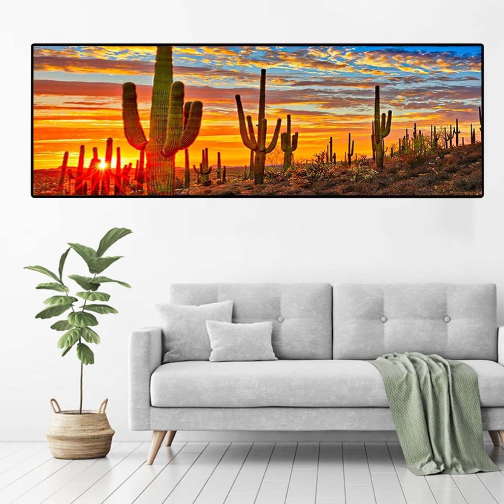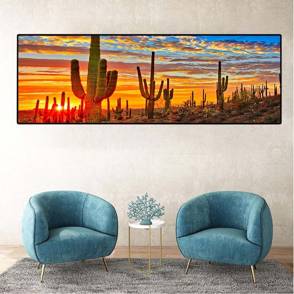 Conjunto de pintura diamante de cacto de pôr do sol infantil 120x40cm, conjunto de pintura de diamante 5D DIY adulto