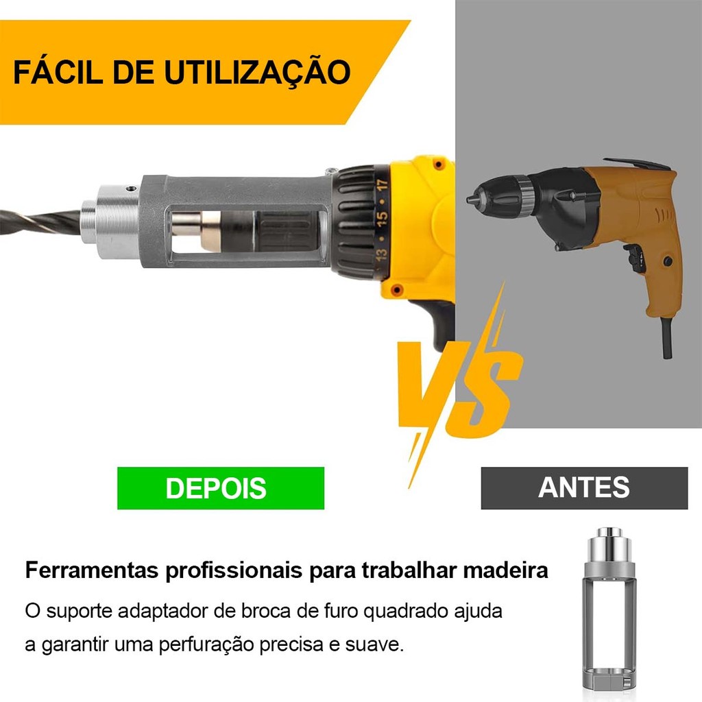 Adaptador de broca de furo quadrado, acessório de encaixe de encaixe de tenon, broca durável