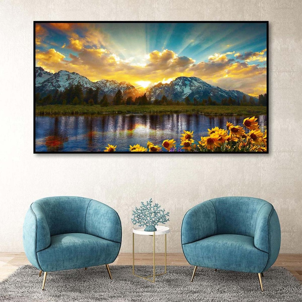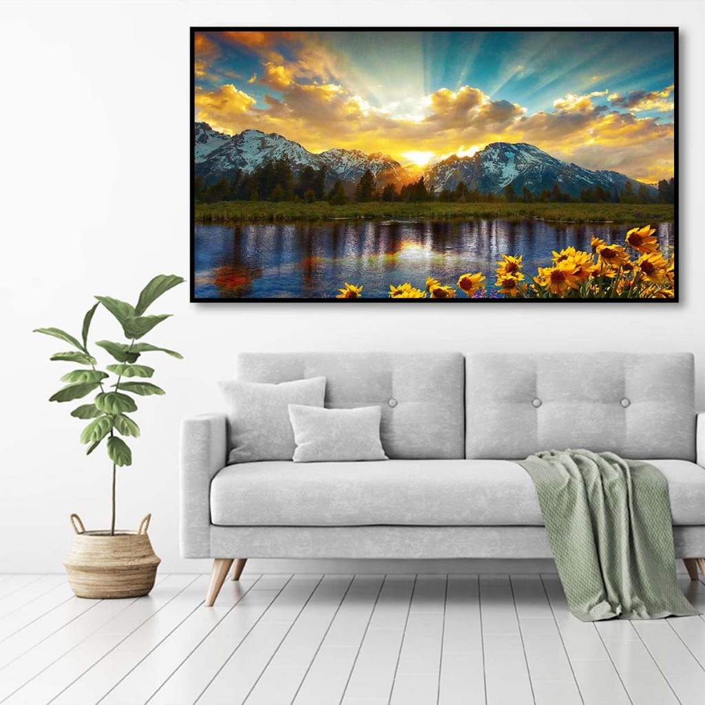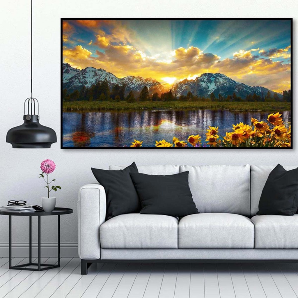 Conjunto de pintura diamante Sunset Lake 70x40cm DIY, adulto/criança 5D conjunto de pintura diamante
