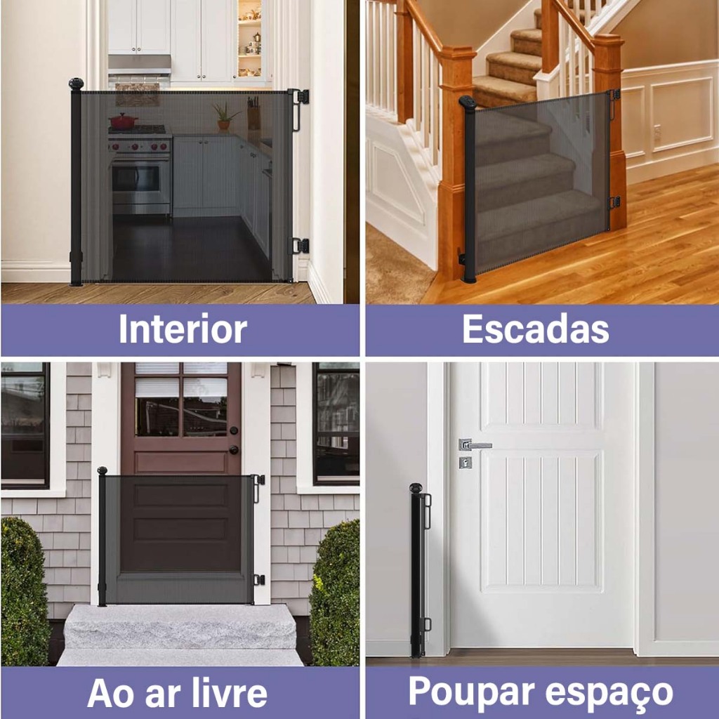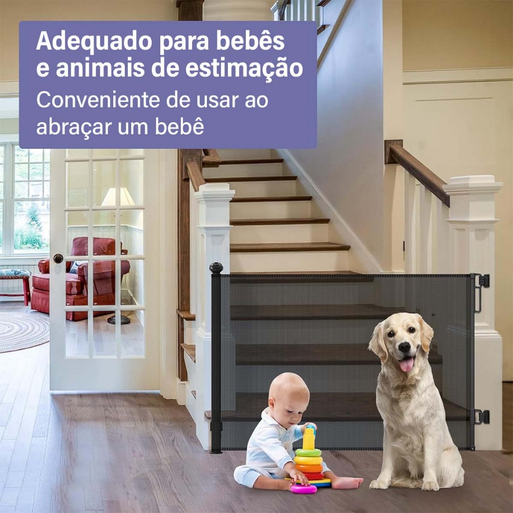 Portão De Segurança Para Bebês 150x86 cm , Extra Alto , Doméstica , Porta Larga Cachorro , Branco/Preto