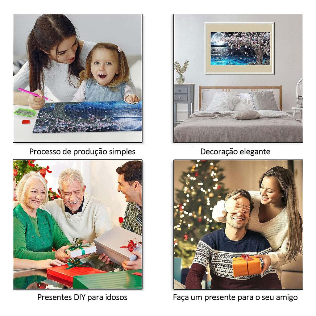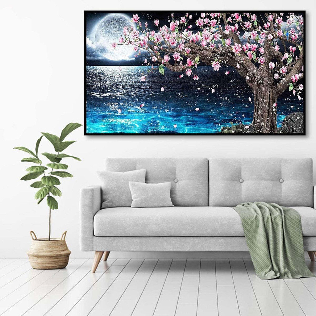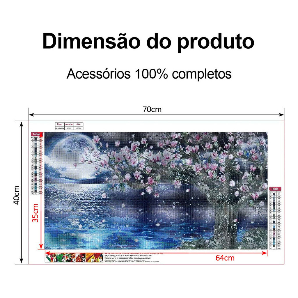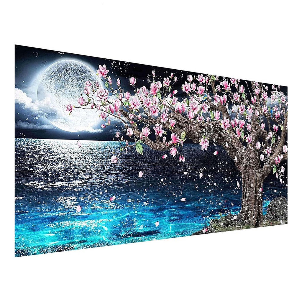 Conjunto de pintura diamante redondo 5d 70x40cm lagoa ao luar