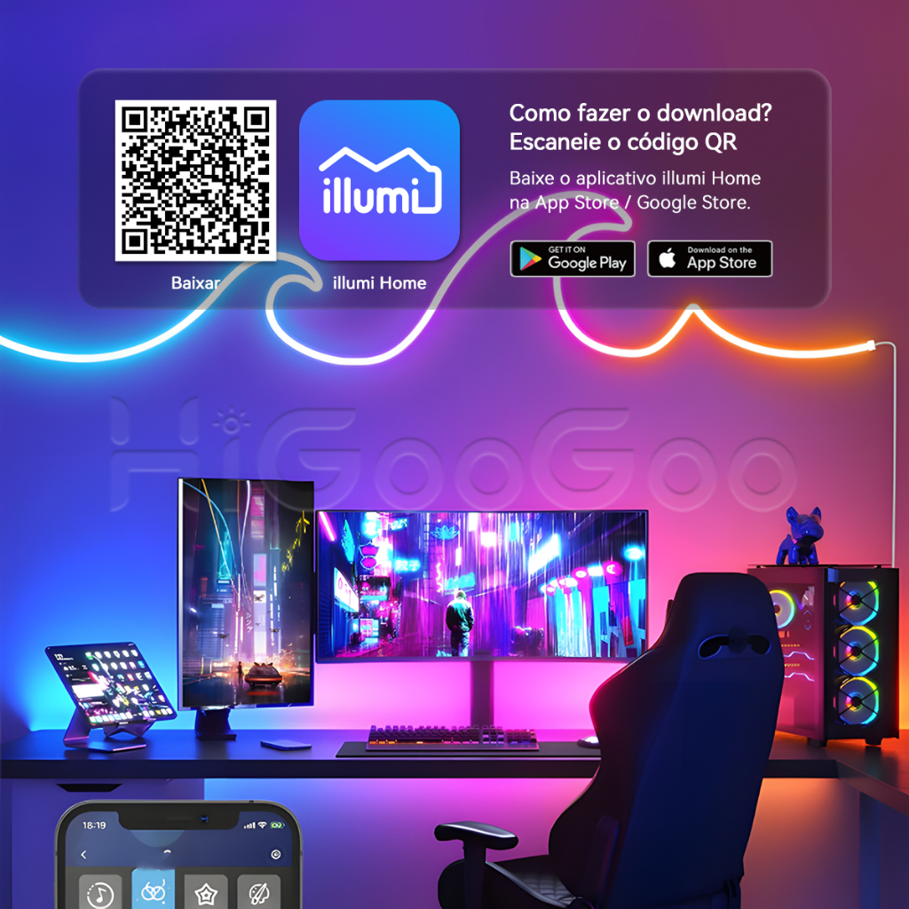 HiGooGoo Fita de Led Neon APP Controle Remoto 30/20/10/5 Metros RGB Led Colorido Luz Decoração Carnaval Natal Festa