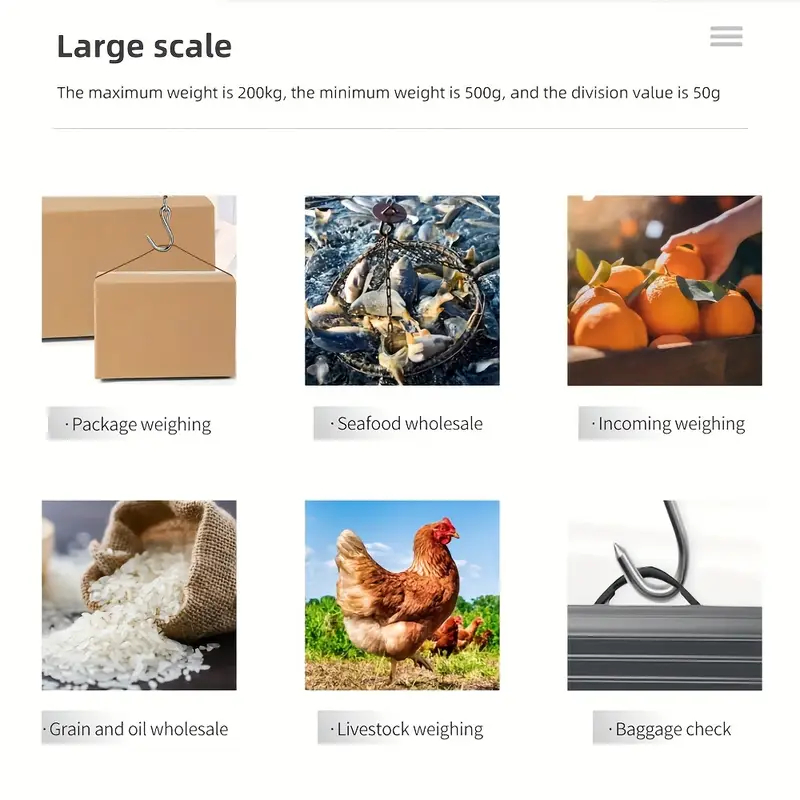 Balança de gancho LCD de 200 kg, adequada para bagagem de pesca de açougueiro