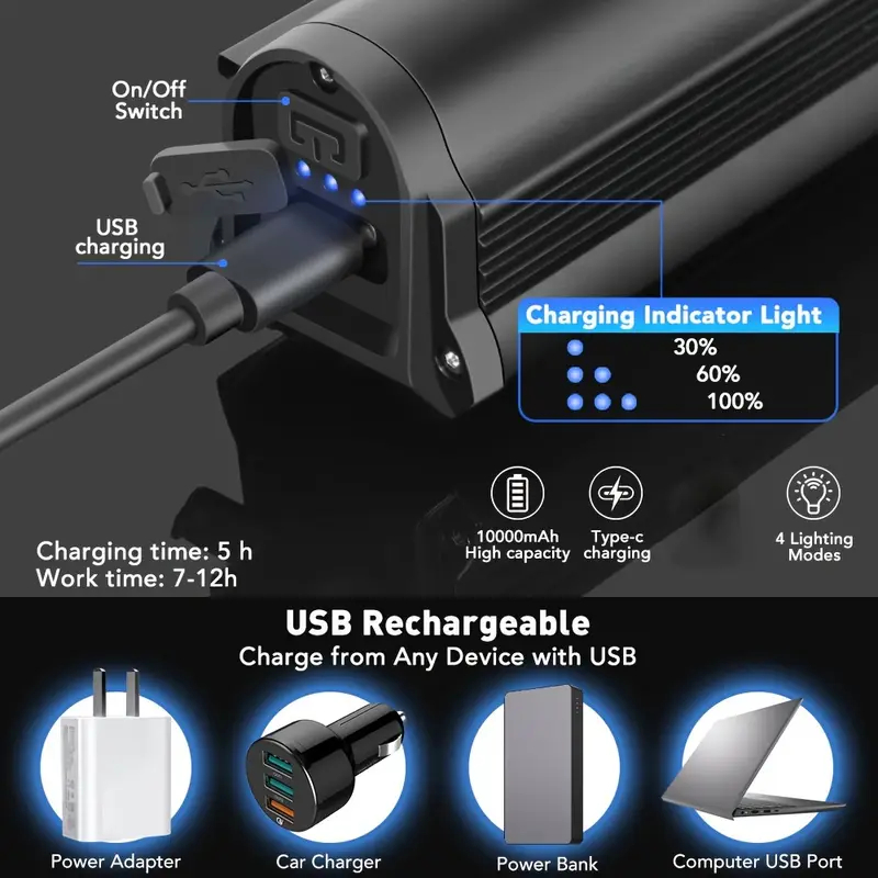 Lanterna Frontal de Bicicleta Farol 5 Leds Alto Brilho 5 Modos de Luz Recarregável