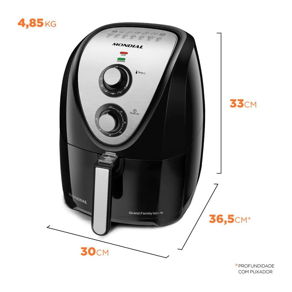 Fritadeira Elétrica Sem Óleo Air Fryer Mondial 5L Grand Family AFN-50 Timer 1900W