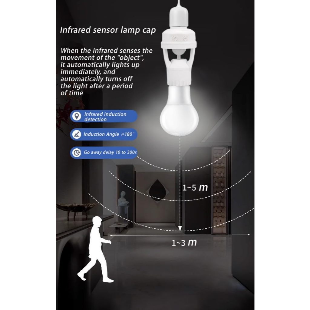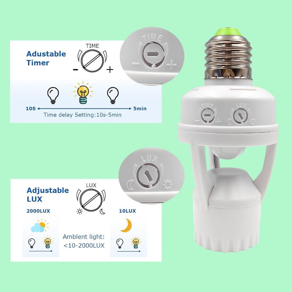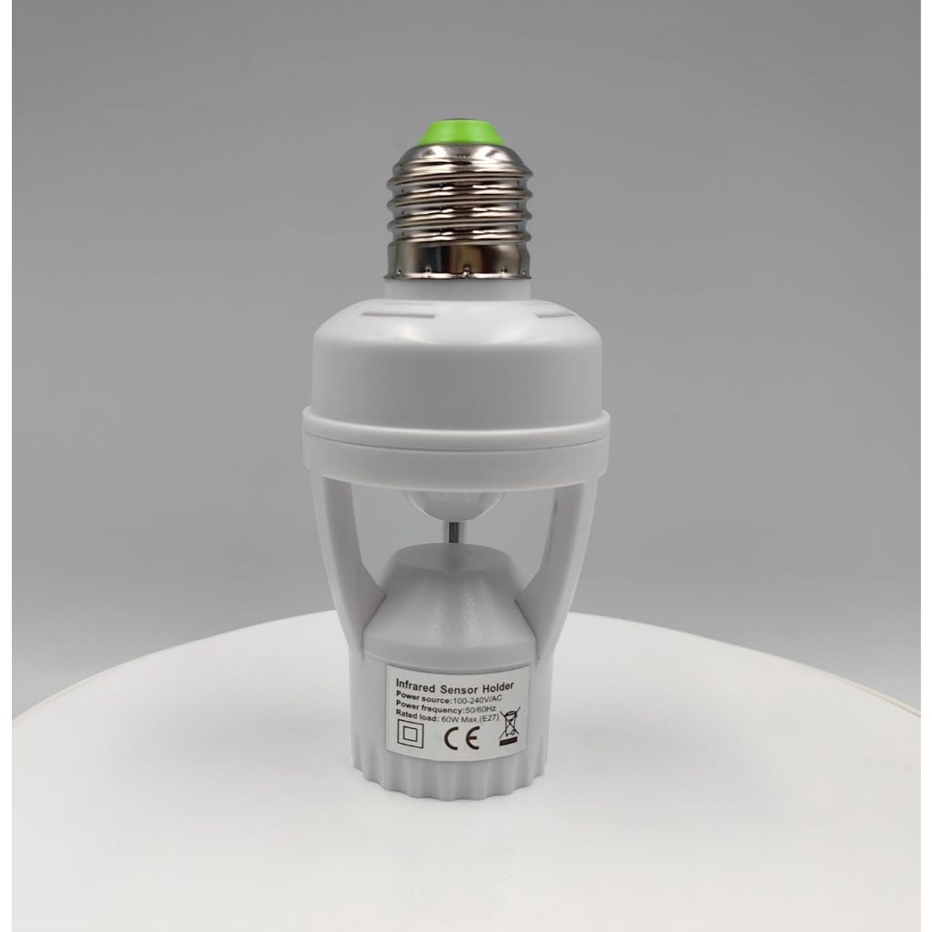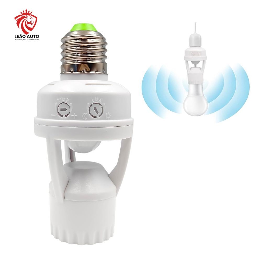 Sensor de Presença Infravermelho com Soquete E26/E27 – Controle Automático de Luz, Ajuste de Duração