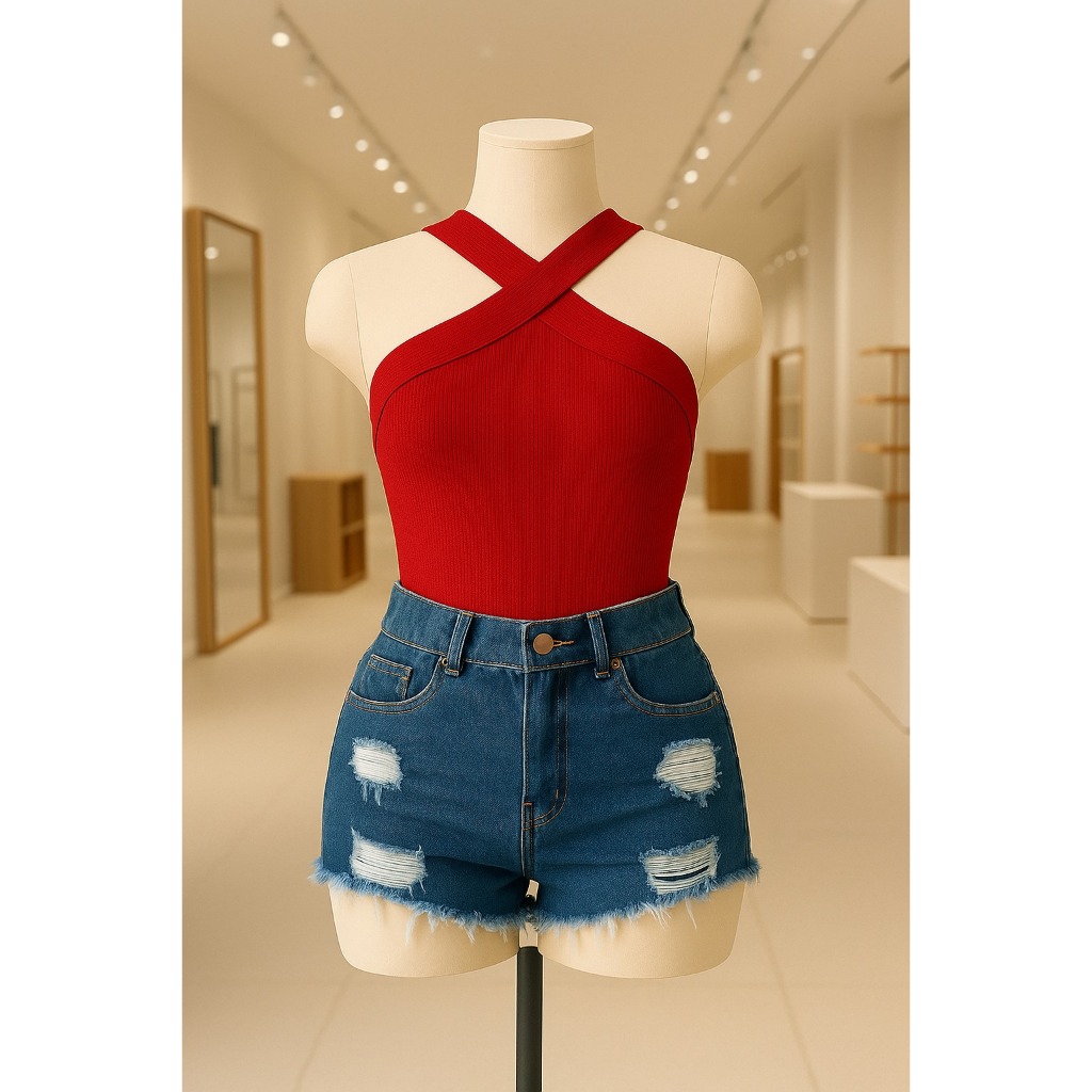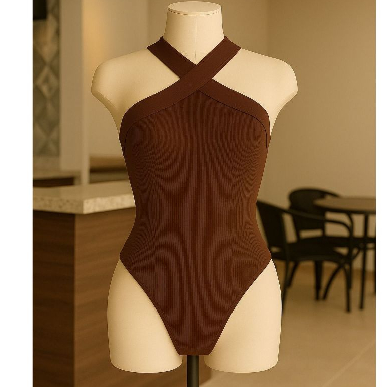 Body Cruzado Feminino Sem Bojo Canelado Cavado Moda Festas