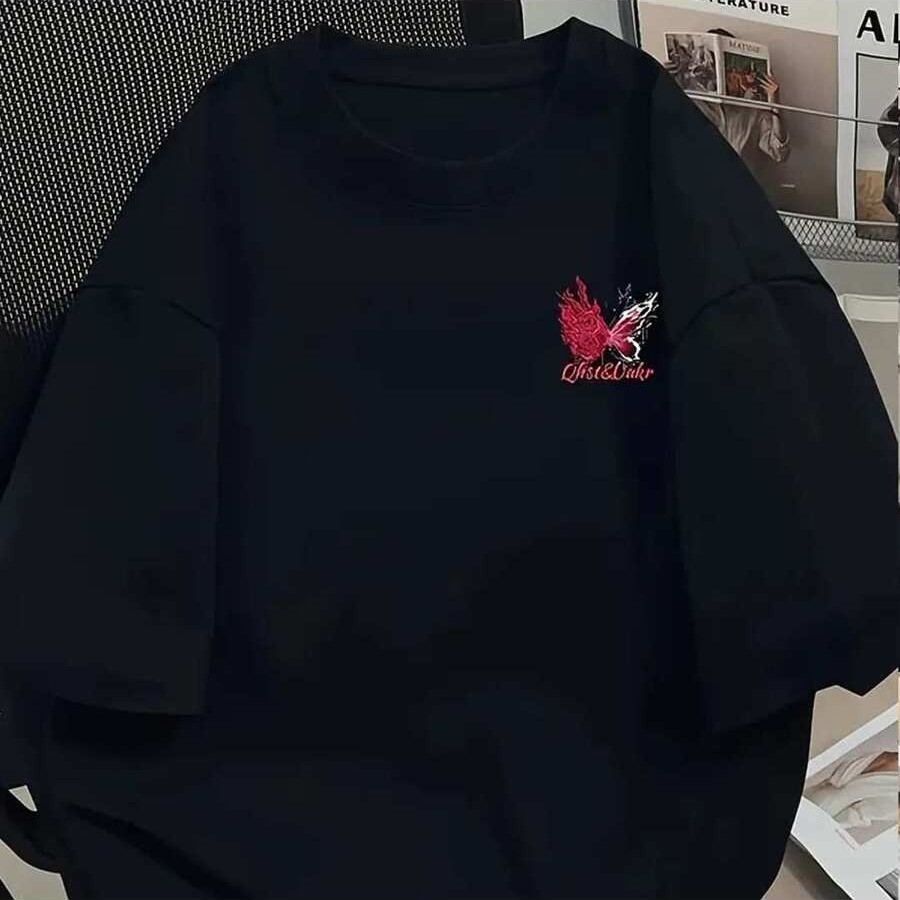 Camiseta Feminina Masculina Butterfly Flames Rosa Vermelho Manga Curta Streetwear T-shirt