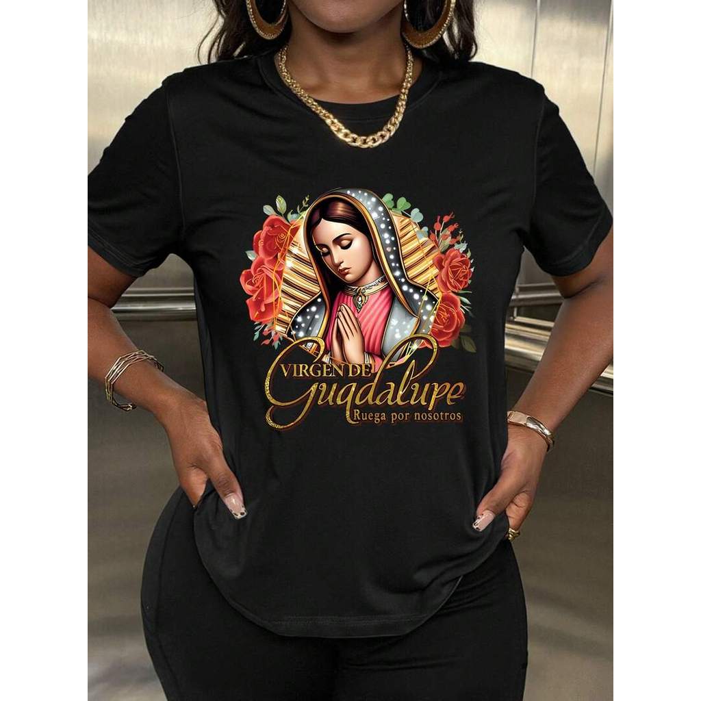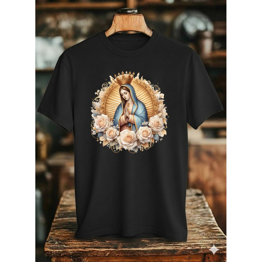 Camiseta IMAGEM DE MARIA C/ ROSA NA MÃO Feminina Unissex Camisa Feminina Masculina Cristão Catolico