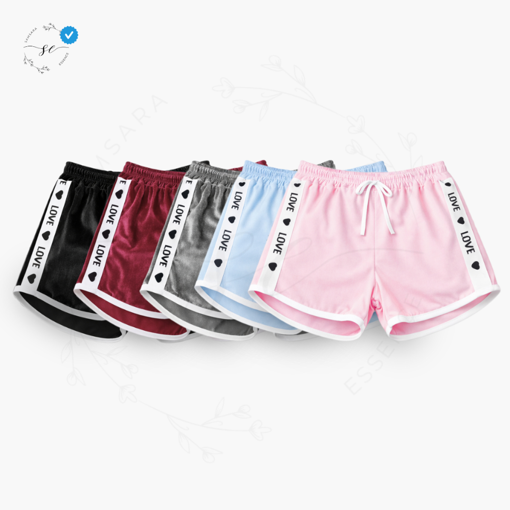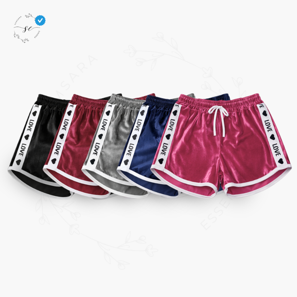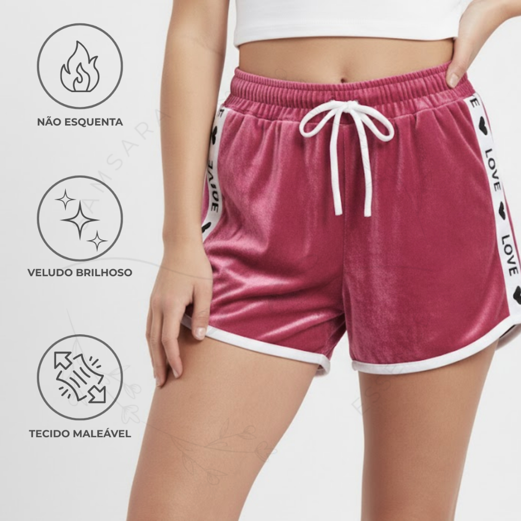Kit 05 Short Feminino Love em Veludo Cintura com Elástico Super Confortável