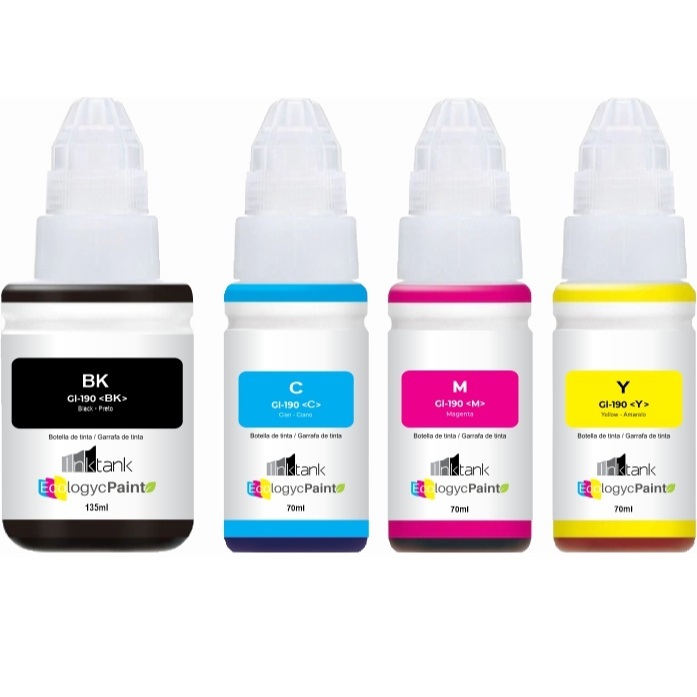 4 Tinta compatível Canon GI190 G1100 2100 4100 3110 Econômica, Fotos nítidas, secagem instantânea e cores mais VIVAS
