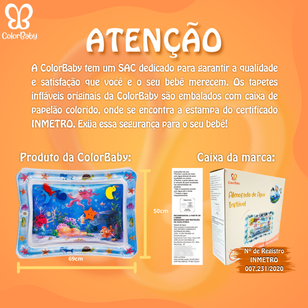 Tapete De Atividades De Água Inflável Para Bebês no Tummy Time ColorBaby - Tamanho Grande