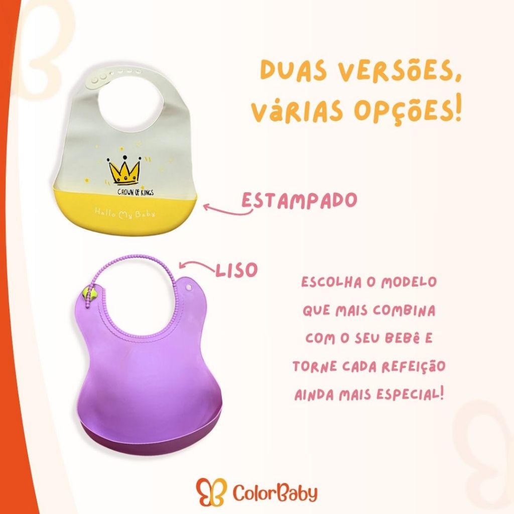 Babador de Silicone Cata-Migalhas Liso ou Estampado – ColorBaby