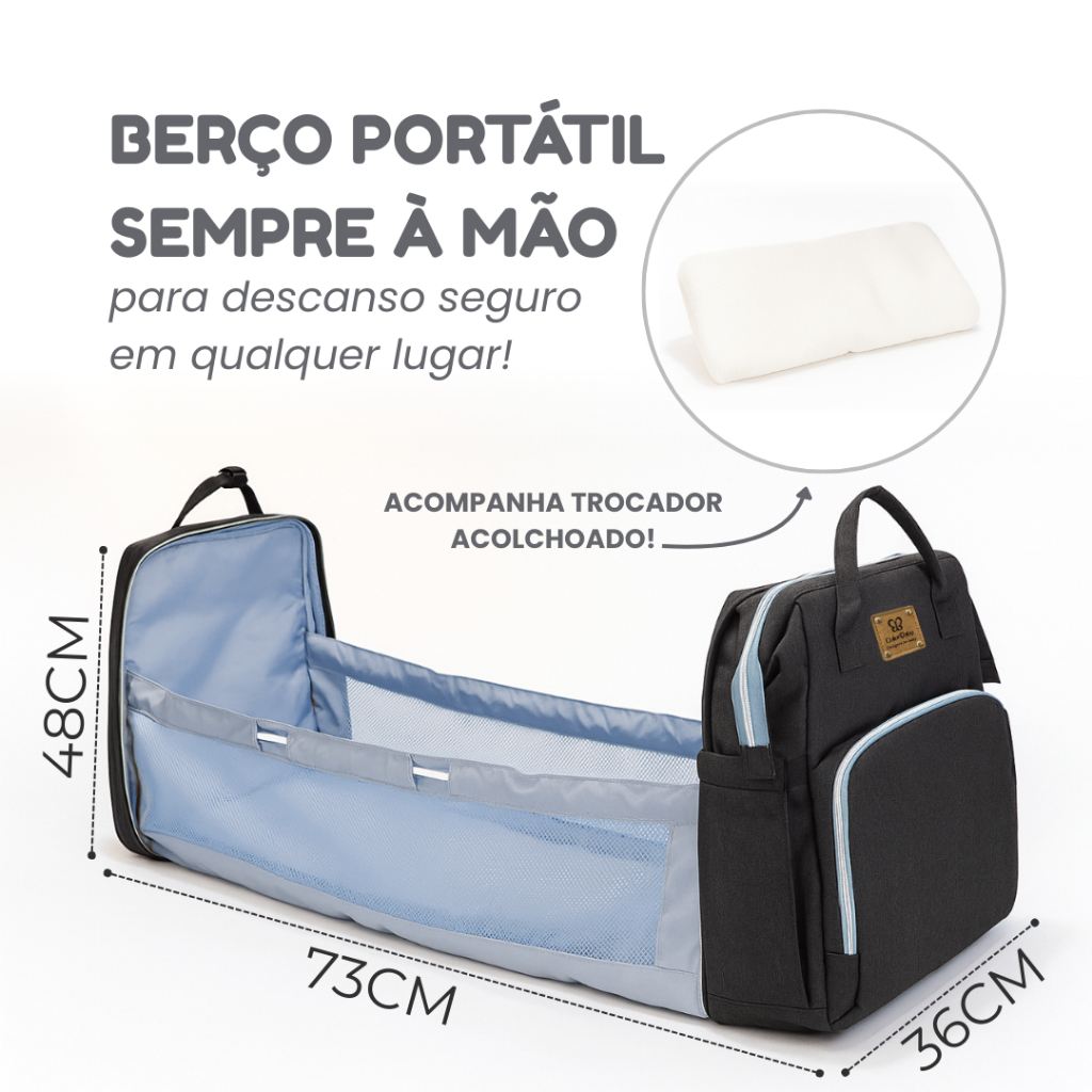Mochila Maternidade Unissex Berço Estendível Portátil – Bolsa Bebê Multifuncional Impermeável Térmica ColorBaby