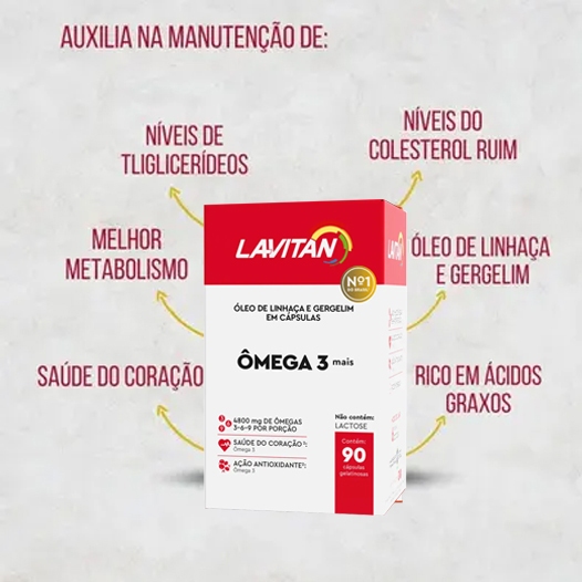 Suplemento Lavitan Ômega 3 - Óleo de Linhaça e Gergelim 90 Cápsulas