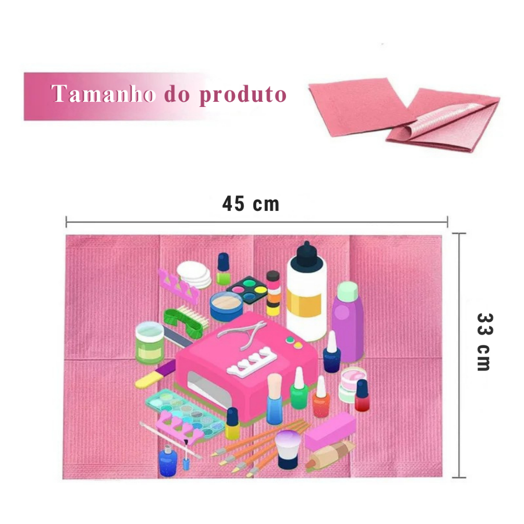 Toalha Babador Descartável para Manicure – 10 UN c/ 3 Camadas, Impermeável, Mesa Nail Design - SQ8555