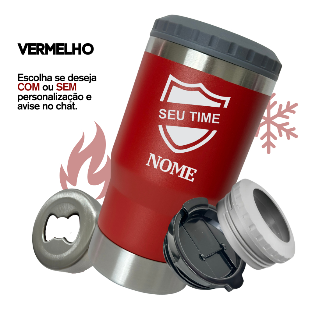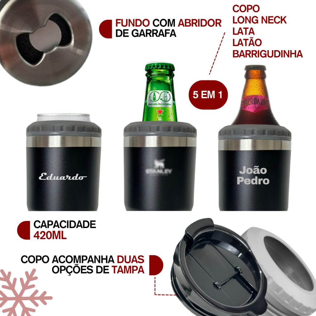 Copo Long Neck Personalizado 420ml 6 em 1 Porta 2 Tampas Latinha Lata Barrigudinha Cerveja Garrafa