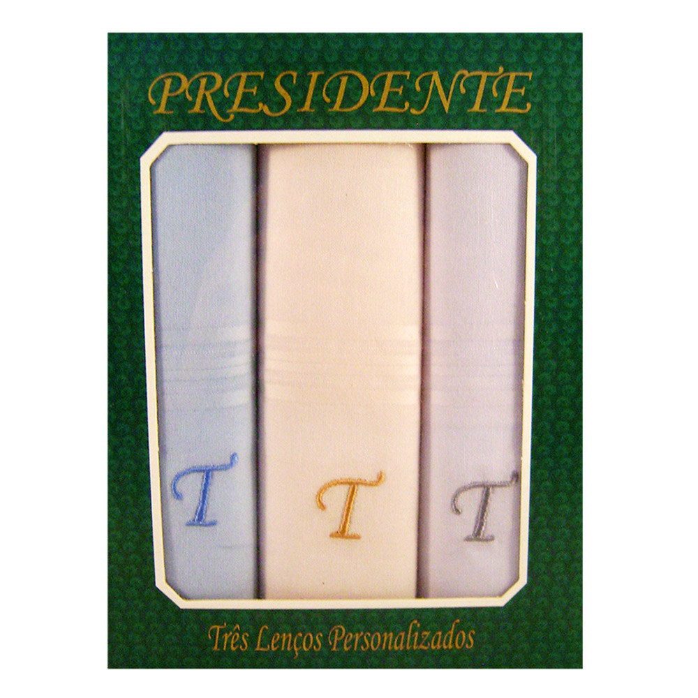 Caixa Lenço Masculino Iniciais Bordadas - Letra T