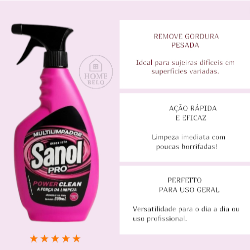 Combo Limpeza 3 Desengraxante Sanol Pro Power Clean 500ml - Multilimpador para Diversas Superfícies