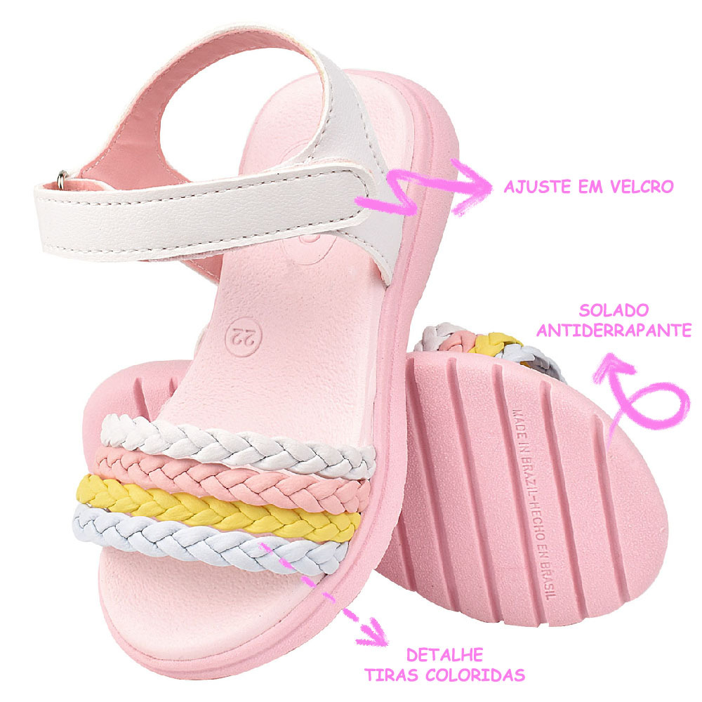 Sandália Infantil Menina Trança Colorida Conforto Feminina