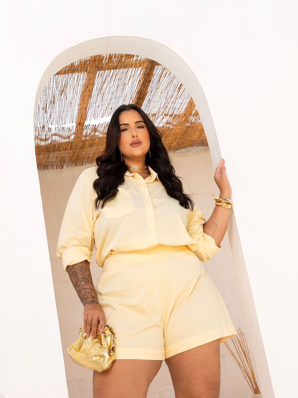 Conjunto 2 Peças Camisa e Shorts Plus Size até o Tamanho 52 Algodão Premium Chic e Elegante Linho Promoção Varias Cores