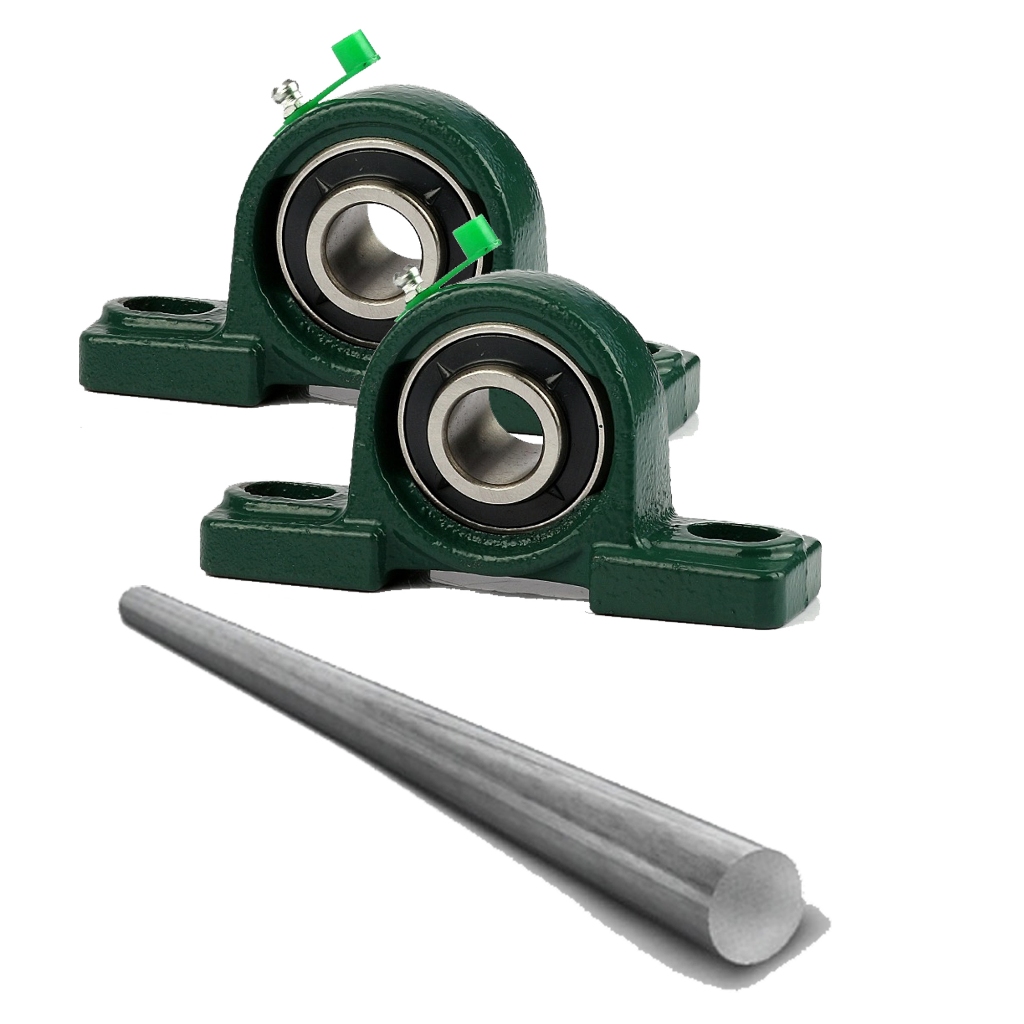 Kit 02 Mancais Tipo Apoio Pedestal com Rolamento 20mm + Eixo (escolha o comprimento)