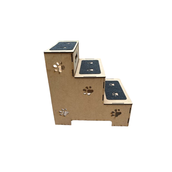 Escada Escadinha pet 3 Degraus Madeira MDF com carpete antiderrapante p/ cachorros e gatos