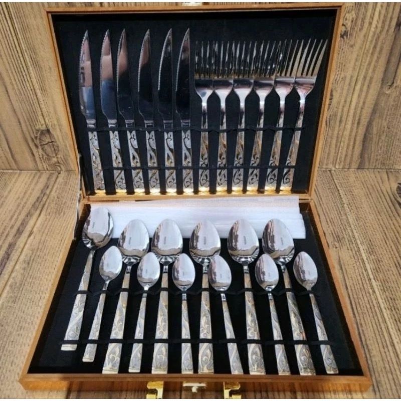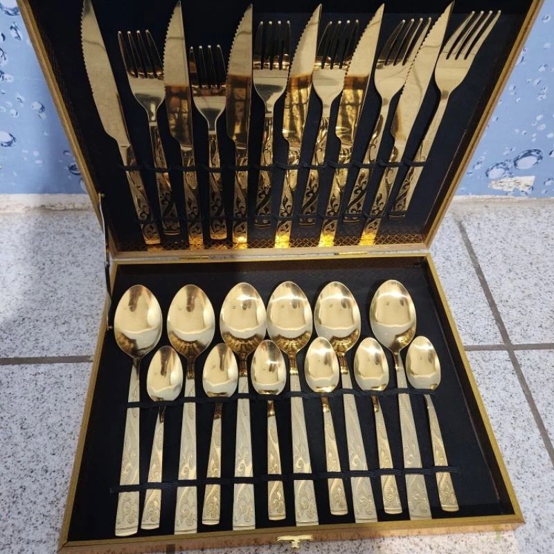 Kit Faqueiro Talheres e Maleta Em Inox Dourado Kit 24 Peças Conjunto De Talheres Caixa De Presente