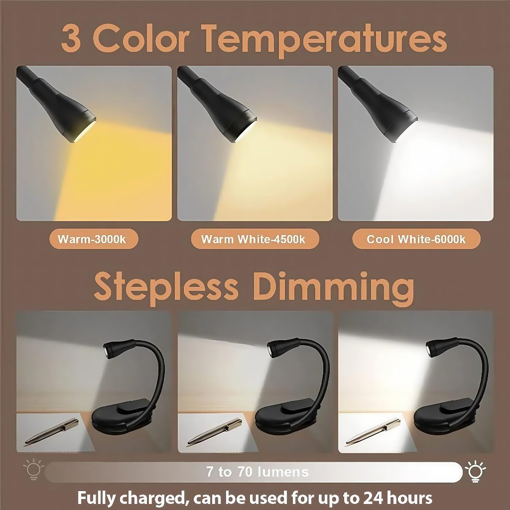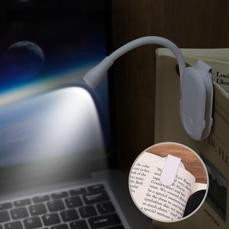 Luz De Leitura De Livro Recarregável Mini LED Clipe Para Cuidados Com Os Olhos Noite 360 ° Lâmpada Ajustável